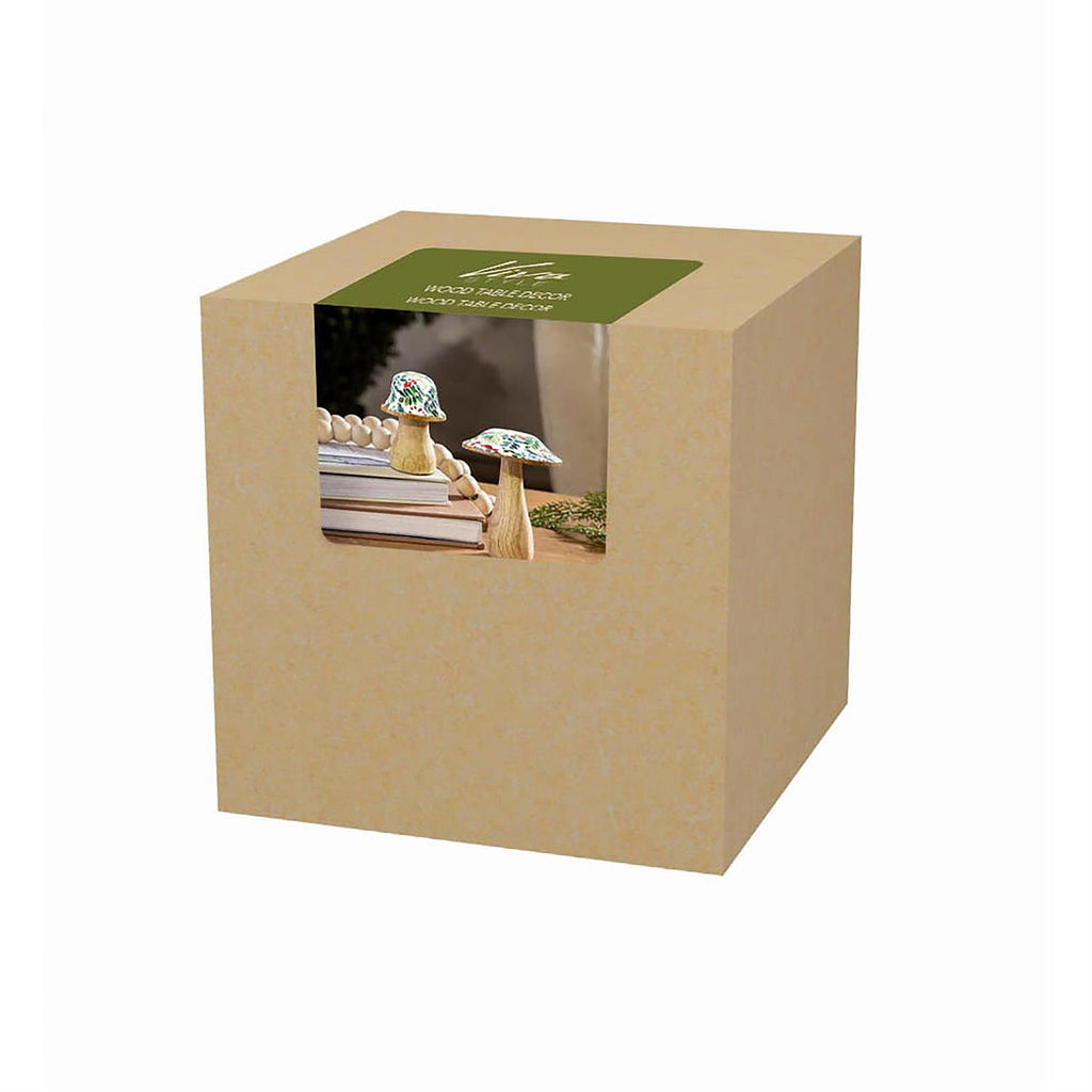 Elevate your seasonal decor with the VivaStyle Festive Foliage Mushroom set. Crafted from high-quality wood, these charming mushrooms feature a beautifully painted foliage pattern, perfect for adding a touch of nature-inspired elegance to your table setting. Measuring 4.0 inches in height and 4.75 inches in width, this set of two is versatile for use as a centerpiece or an accent on shelves or mantels. The natural wood finish combined with the vibrant design makes them ideal for holiday decorating and year-round charm.
