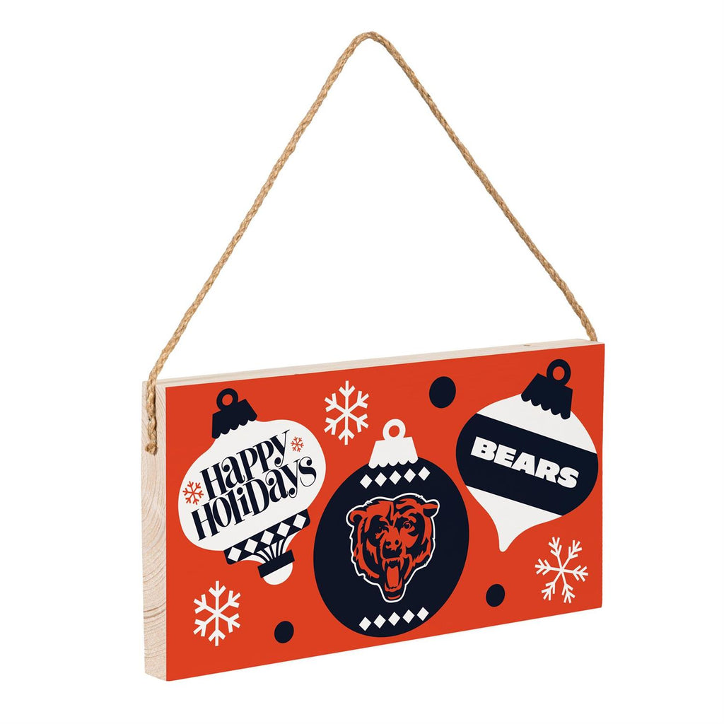 Celebrate the holiday season with a touch of team spirit using the Chicago Bears Holiday Wood Wall Sign. Measuring 6x11 inches, this charming decorative piece features vibrant holiday graphics combined with the iconic Chicago Bears logo. Crafted from durable wood, it hangs easily with the attached rustic rope, making it perfect for any fan's home, office, or man cave. This sign is an ideal gift for Bears enthusiasts, adding a festive flair to any space while proudly showcasing team pride.