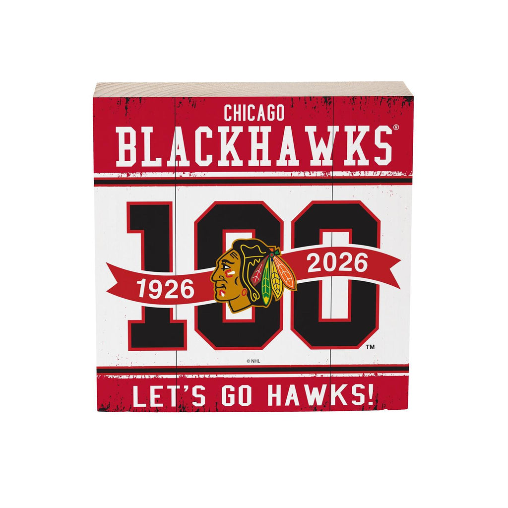 Celebrate a century of Chicago Blackhawks pride with this commemorative 100th Anniversary Block. Perfectly sized at 6x6 inches, this table décor piece captures the spirit of the team with its vibrant colors and iconic logo. Crafted from durable materials, it's designed to stand out on any shelf or tabletop. Whether you're a lifelong fan or new to the team, this block is a must-have addition to your home or office, showcasing your loyalty in style. Ideal for gifting or personal collection, it’s a timeless tribute to a legendary franchise.