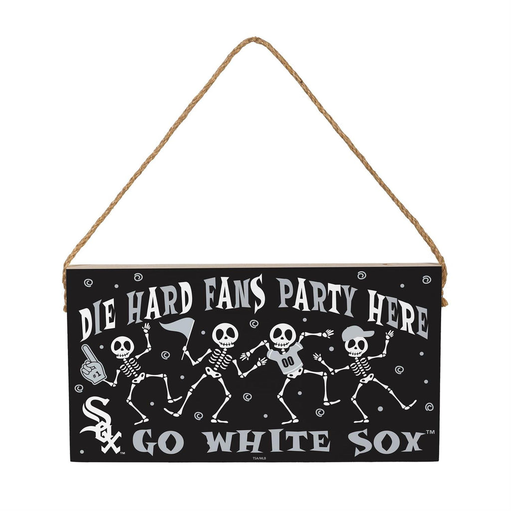 Celebrate Halloween with a sporty twist by displaying the Chicago White Sox Halloween Wood Wall Sign. Perfect for any die-hard fan, this 6x11-inch sign features a playful skeleton design that adds a festive and spirited touch to your home décor. Made from quality wood, it's durable and easy to hang with its attached rope. Whether you're hosting a Halloween party or just want to show off your team pride, this sign is a must-have addition to your seasonal decorations.