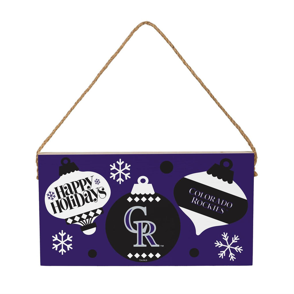 Celebrate the holiday season with this Colorado Rockies Holiday Wood Wall Sign. Measuring 6 by 11 inches, this festive sign is perfect for any Rockies fan looking to add a touch of team spirit to their holiday décor. Crafted from durable wood, it features vibrant team colors and holiday-themed graphics, making it an eye-catching addition to any room. The rustic rope for hanging adds a charming touch, making it easy to display on any wall or door. Perfect for gifting or personal use, this sign blends sports enthusiasm with holiday cheer.