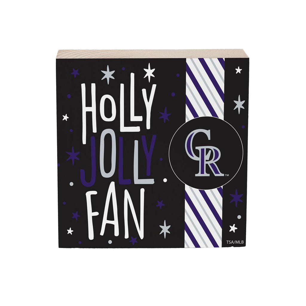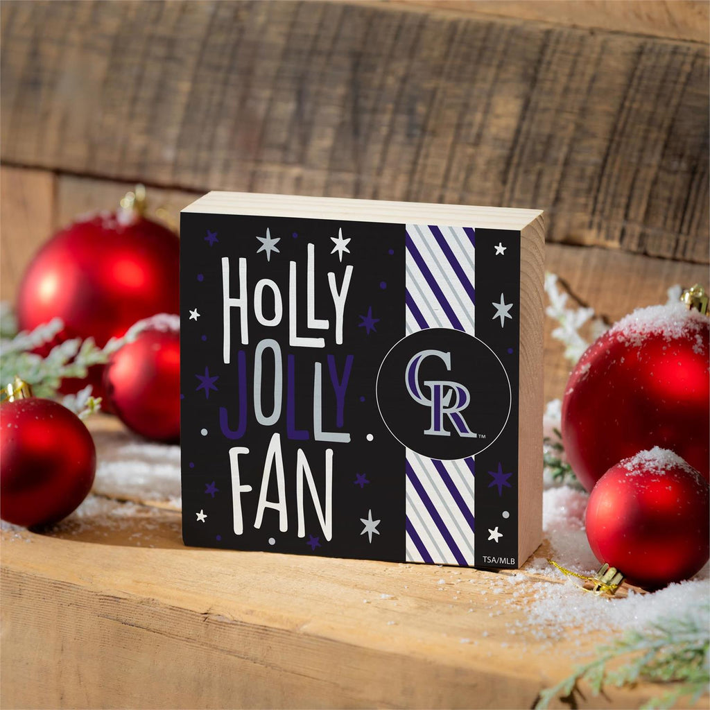Celebrate the holiday season with the Colorado Rockies Plock, a charming addition to any fan's table décor. Measuring 6x6 inches, this decorative block is perfect for showcasing your team spirit. With its festive design, featuring the Rockies logo and a 'Holly Jolly Fan' message, this piece adds a playful touch to your holiday decorations. Made with sturdy materials, it's designed to stand freely on tables, shelves, or mantels, making it versatile for any display.
