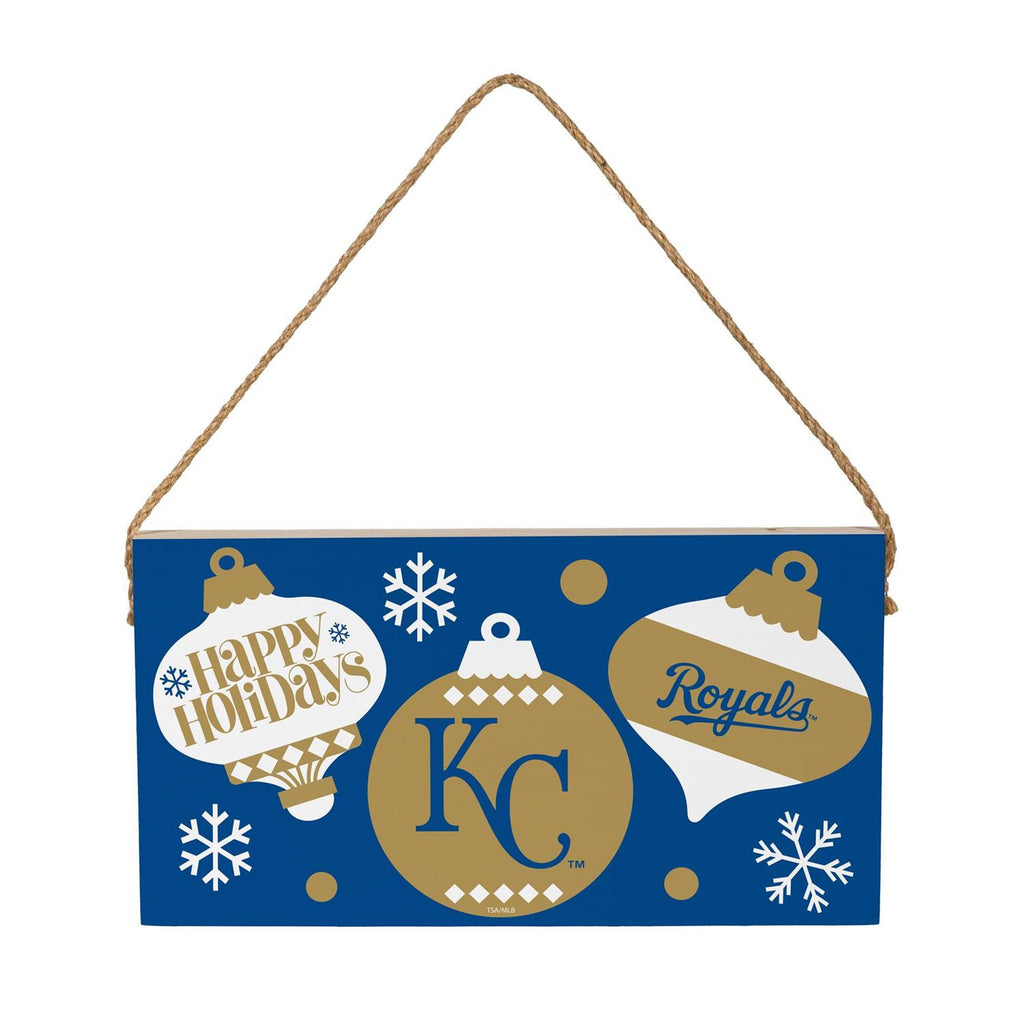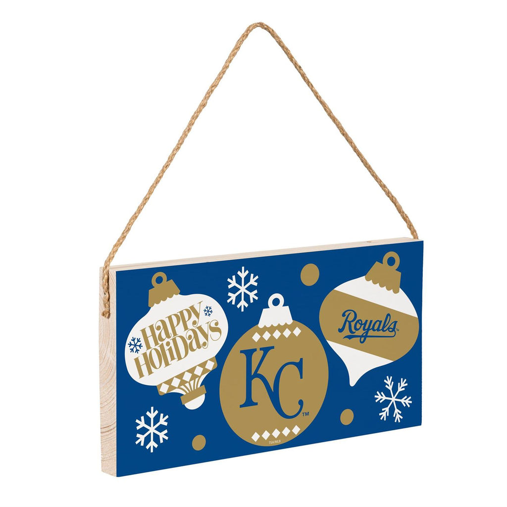 Celebrate the holiday season with the Kansas City Royals Holiday Wood Wall Sign. This charming piece, measuring 6 by 11 inches, is perfect for adding a touch of team spirit to your festive décor. Crafted from durable wood, the sign features the Royals' logo and holiday-themed ornament designs in striking blue and gold colors. Its lightweight construction and included rope make it easy to hang anywhere in your home. Ideal for Royals fans, this wall sign is a great way to showcase your team pride while embracing the holiday cheer.