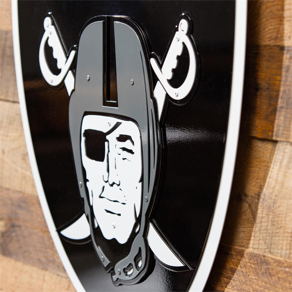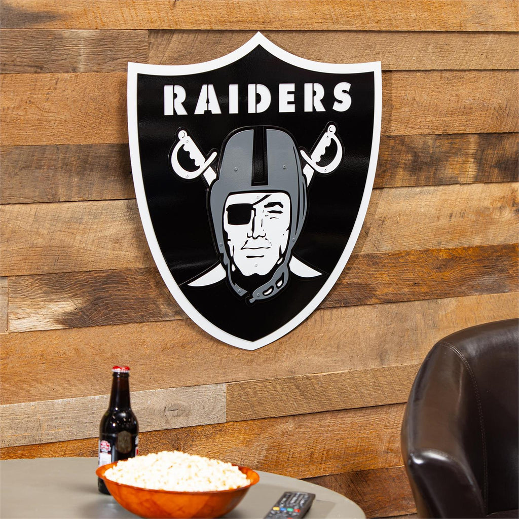 Show your team spirit with the Las Vegas Raiders Layered Metal Wall Art. Perfect for any fan's home, this sign combines sleek design with a bold statement. Measuring 15.5 x 11.5 inches, it's crafted from durable metal with a striking layered effect that adds depth and dimension. The iconic Raiders logo is expertly rendered in black and silver tones, making it a standout piece for any room. Whether you're decorating a game room, office, or living space, this wall art is a must-have for dedicated fans.