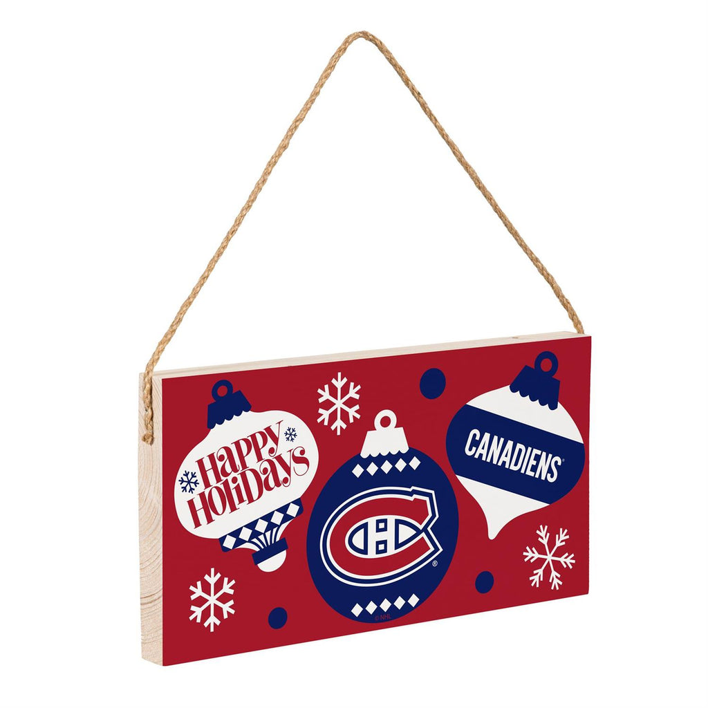 Celebrate the holiday season while showcasing your team pride with the Montreal Canadiens Holiday Wood Wall Sign. Measuring 6x11 inches, this festive sign features vibrant team colors and holiday-themed graphics, making it a perfect addition to any fan's holiday décor. Crafted from durable wood, it offers a touch of rustic charm that complements any space. The sign comes with a sturdy jute rope for easy hanging, allowing you to display it effortlessly on walls, doors, or mantels. Ideal for your home, office, or as a thoughtful gift for any Canadiens fan.