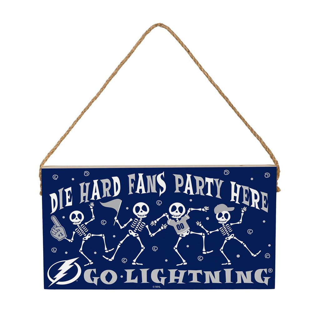 Get into the spooky spirit while showing off your team pride with the Tampa Bay Lightning Halloween Wood Wall Sign. This 6x11 inch sign features a playful skeleton design and bold team graphics, perfect for Halloween enthusiasts and die-hard Lightning fans alike. Made from durable wood, it comes with a rope hanger for easy display. Whether you're decorating for a Halloween party or simply adding a festive touch to your fan cave, this sign is a must-have for the season. Celebrate your favorite hockey team with a dash of Halloween fun.