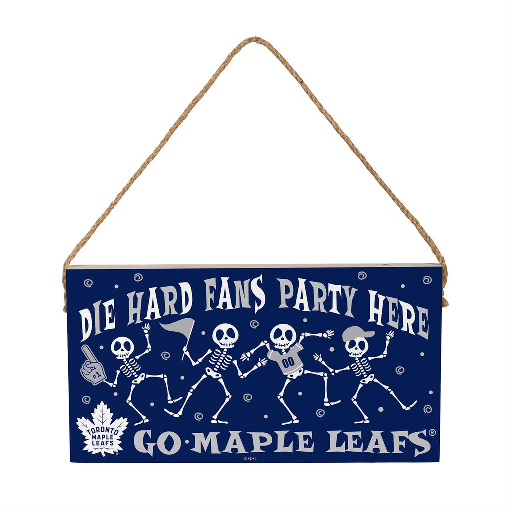 Celebrate Halloween with a touch of hockey spirit using the Toronto Maple Leafs Halloween Wood Wall Sign. Measuring 6x11 inches, this vibrant sign features playful skeletons and a bold message that showcases your team pride. Perfect for decorating your home, office, or fan cave, this sign adds a unique and festive touch to your seasonal decor. Made from sturdy wood, it includes a rustic rope for easy hanging. Whether you're hosting a Halloween party or simply want to show off your love for the Maple Leafs, this sign is a must-have addition.
