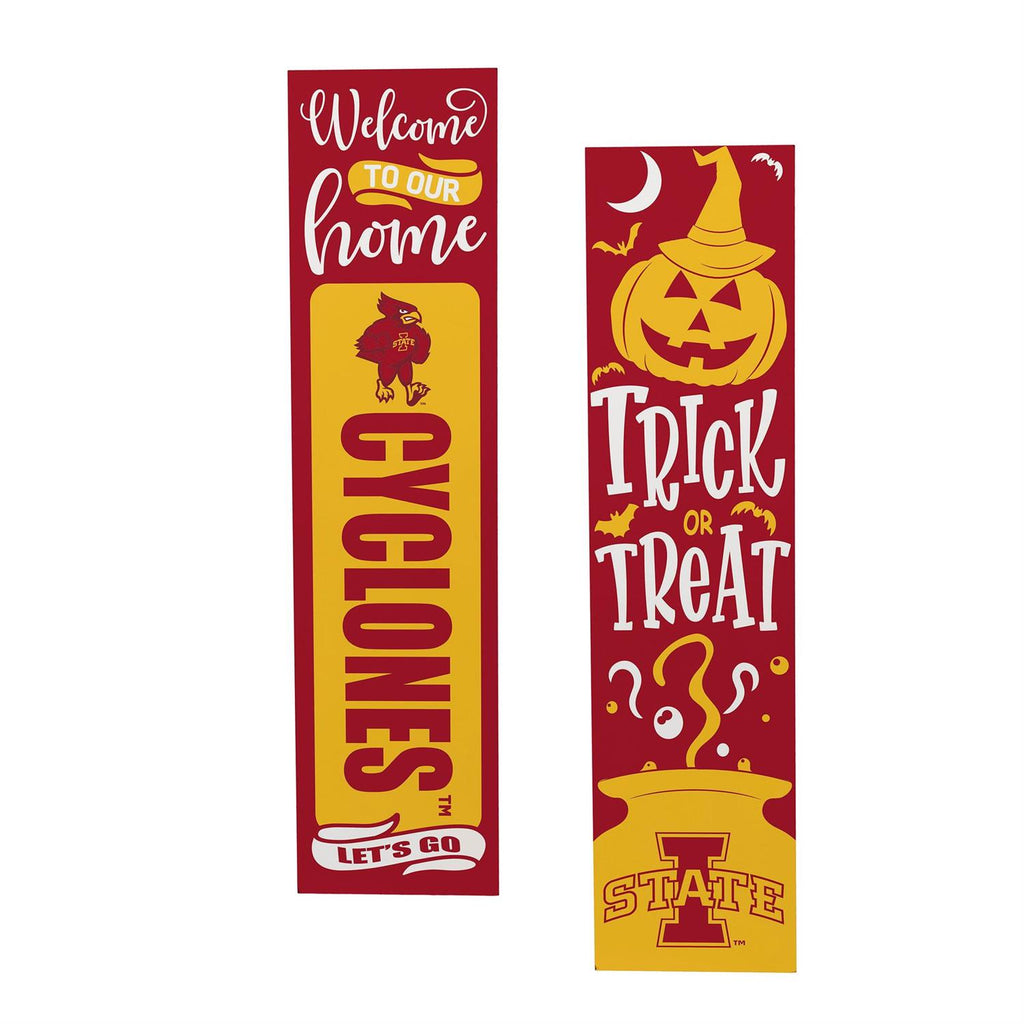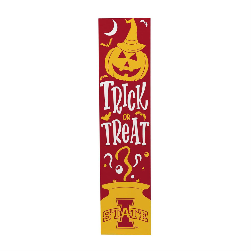 Embrace the spirit of Halloween with this double-sided porch leaner featuring Iowa State University themes. Perfect for adding a festive touch to your porch, this leaner combines school pride with seasonal charm. Measuring 46 inches, it fits perfectly against your doorway or porch wall, offering a vibrant display of Halloween and collegiate enthusiasm. Made from durable materials, this leaner is designed to withstand the elements, ensuring it remains a staple of your seasonal décor for years to come. The bold colors and playful design are sure to catch the eye of trick-or-treaters and guests alike.