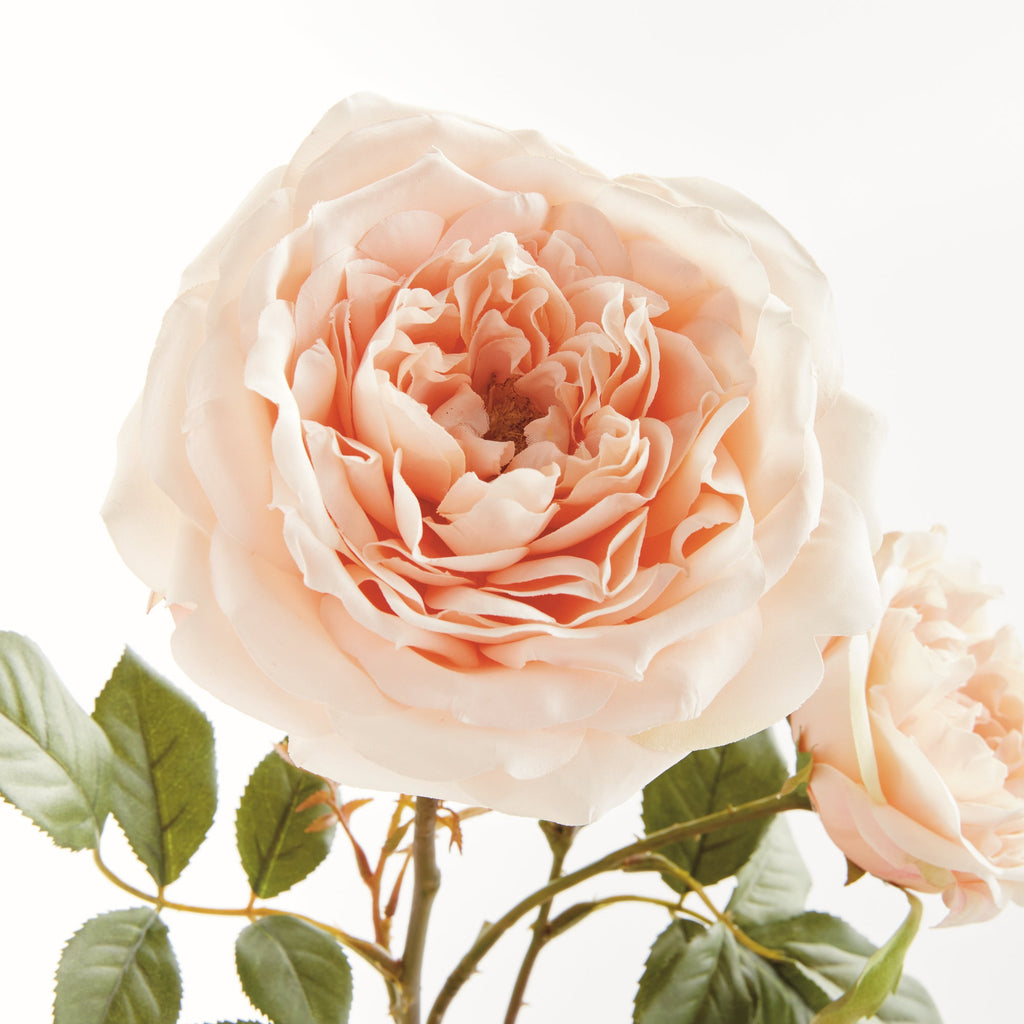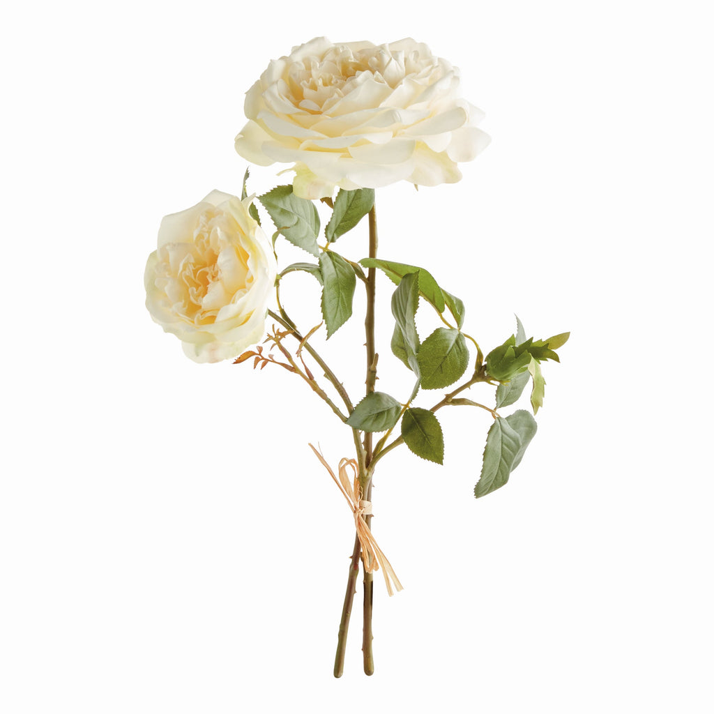 Made to look 100% realistic- you'd swear this pair of regal English rose stems were cut this morning. With large blooms and soft, life-like petals, they are sure to cheer up any room. Great for arrangement on kitchen table, home office or powder room.