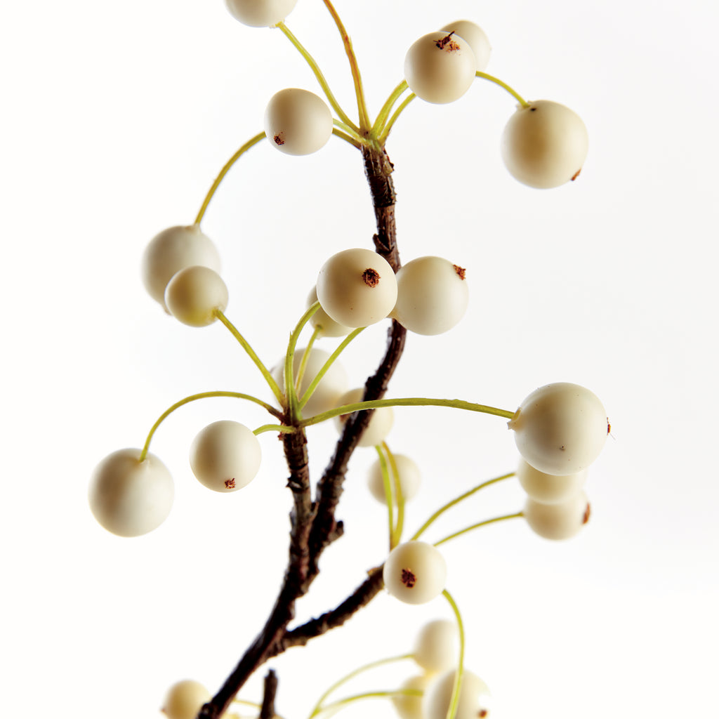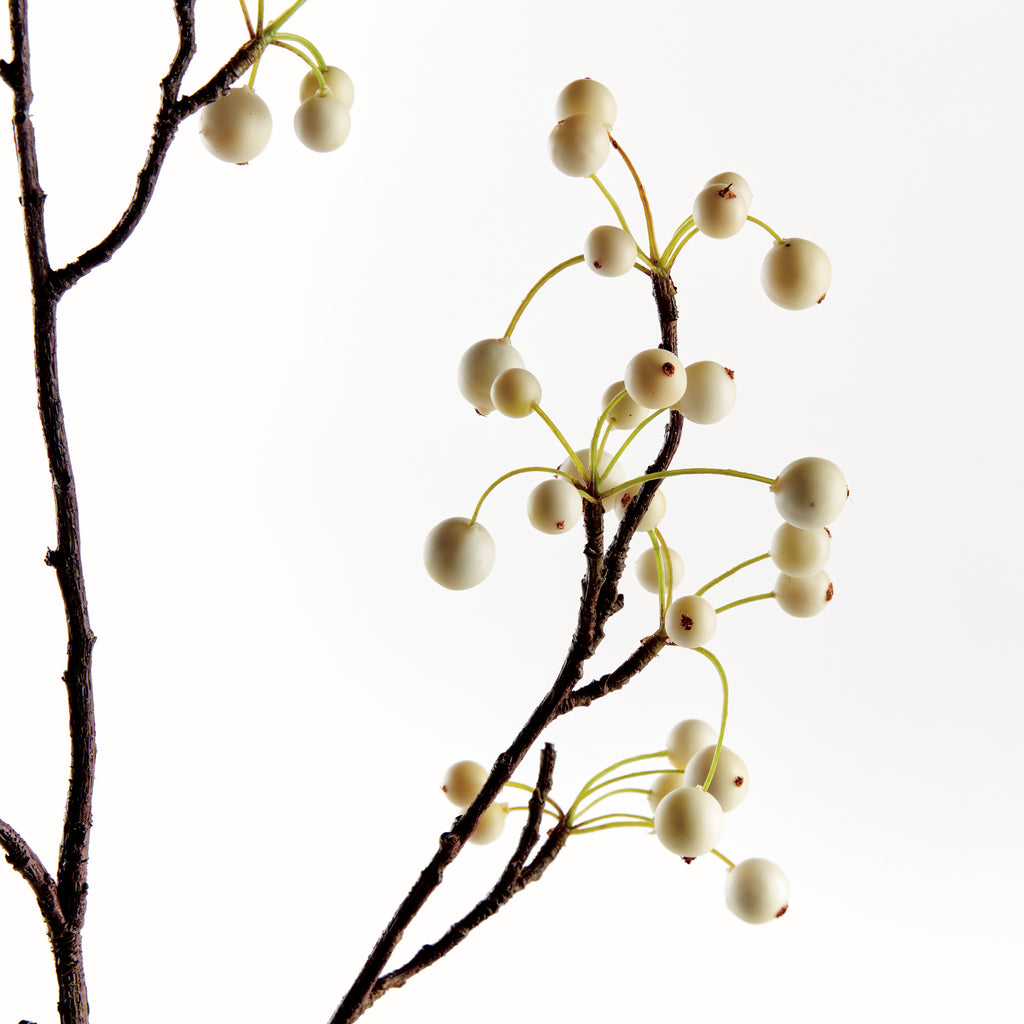 Made to look so realistic- you'd swear this white berry branch was just cut this morning. So authentic looking, you'll have to remind yourself not to add water. Add to your floral faux stems for a dynamic, designer-inspired arrangement.
