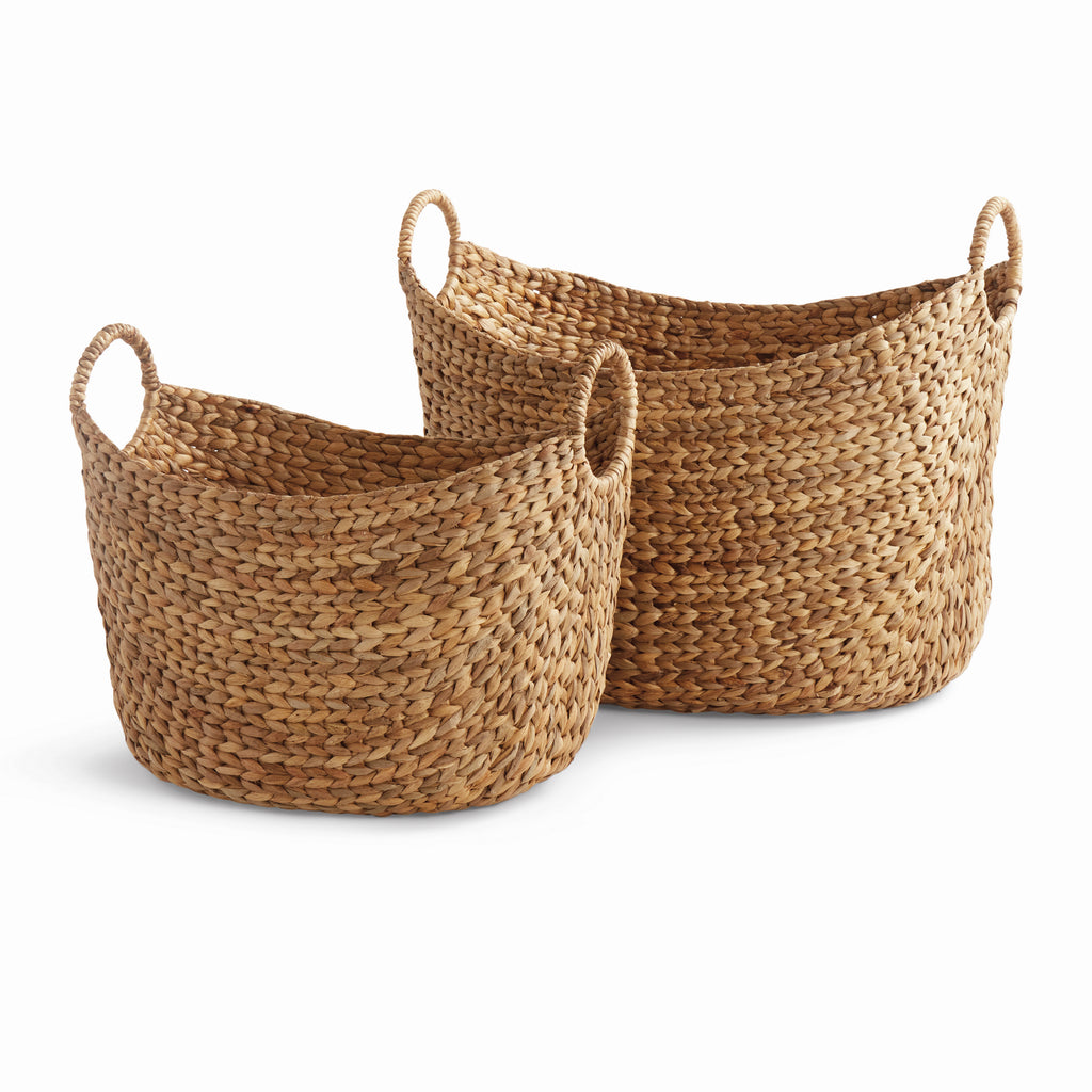 The classic statement baskets with handles made out of woven water hyacinth. Abundantly grown and sustainably harvested, what a refreshing take! This large scale woven set is a beautiful way to store your favorite books or even linens.