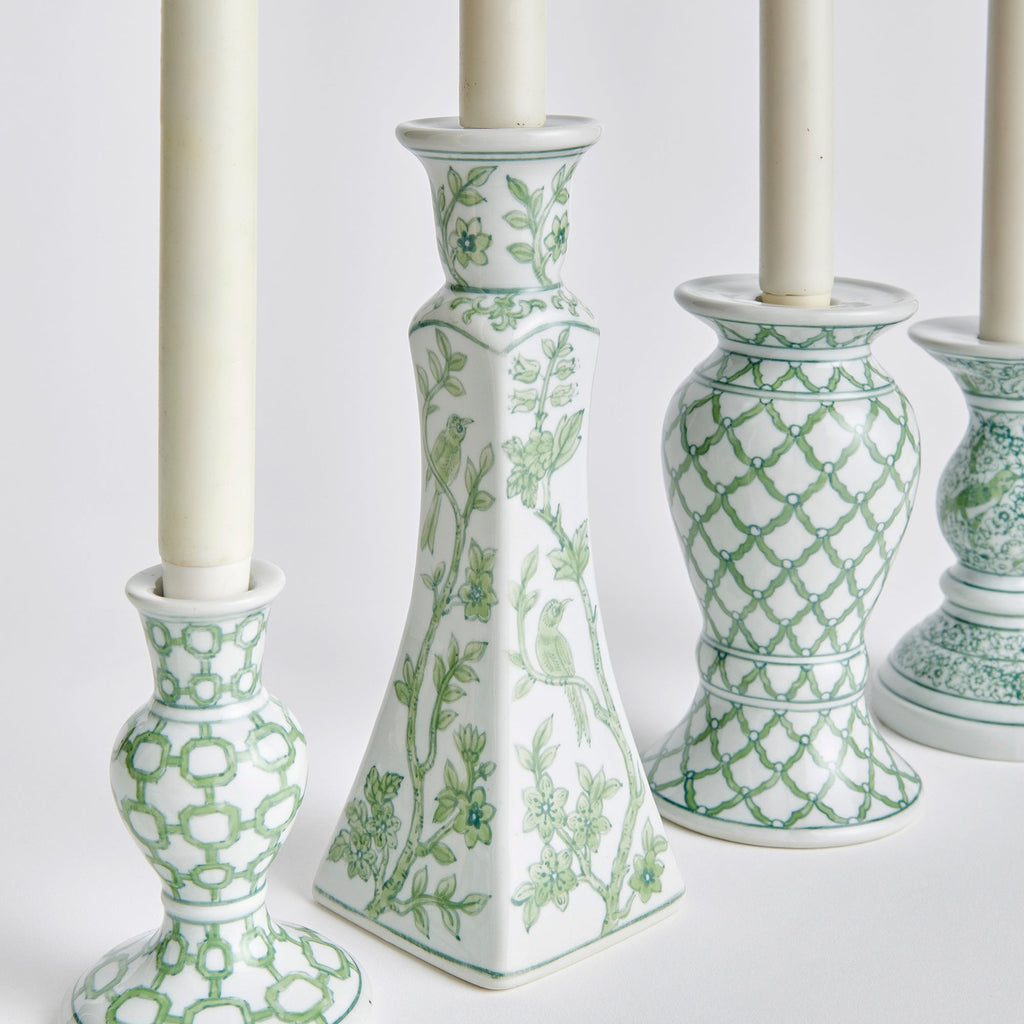 A classic chinoiserie in shades of green and white. How refreshing! The color green is known to have a harmonizing, balancing effect, making these pieces an inspired design choice. They add stability and calm to any well-appointed bookshelf, mantel, or entry console.