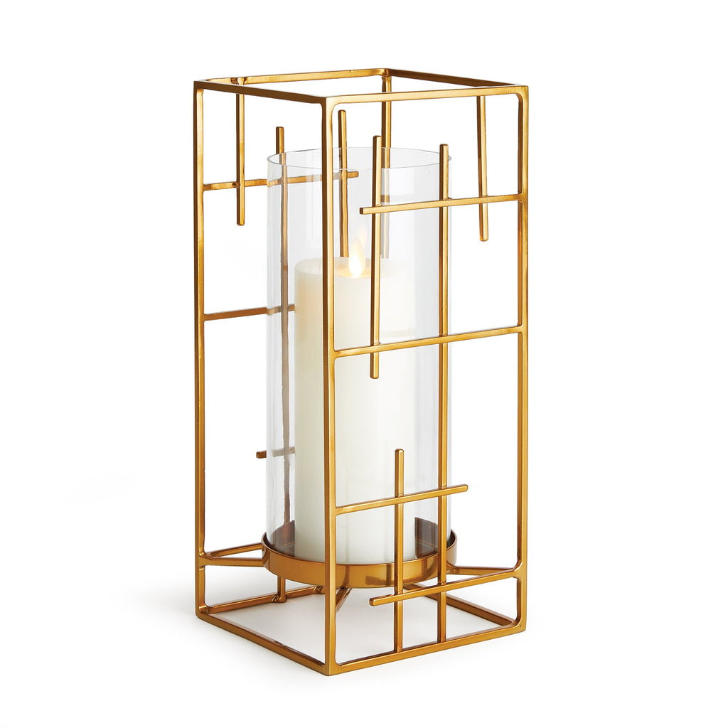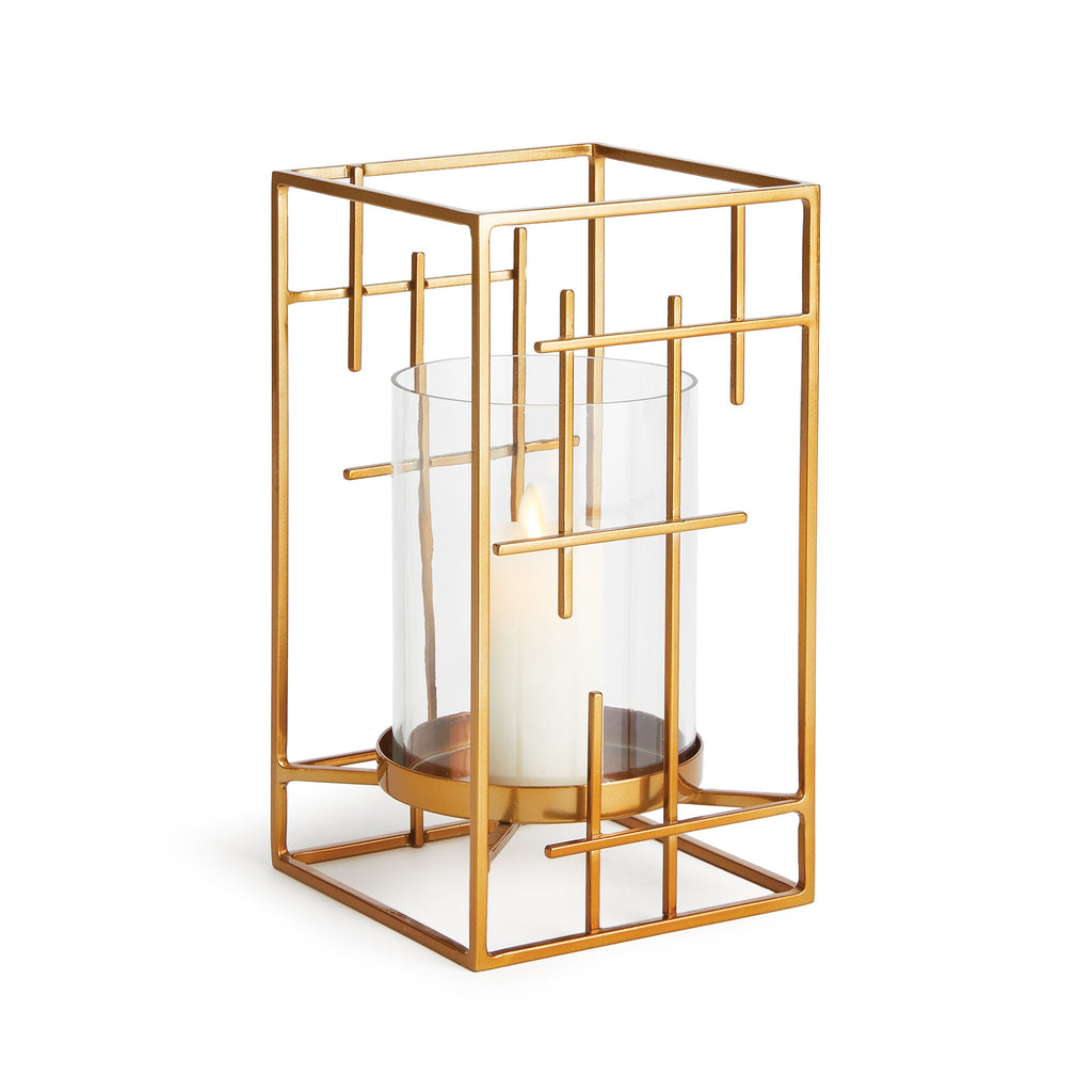 - Showcases Mondrian-inspired geometric lines and a squared, graphic shape, epitomizing mod style. Add a candle and enjoy the warm glow.