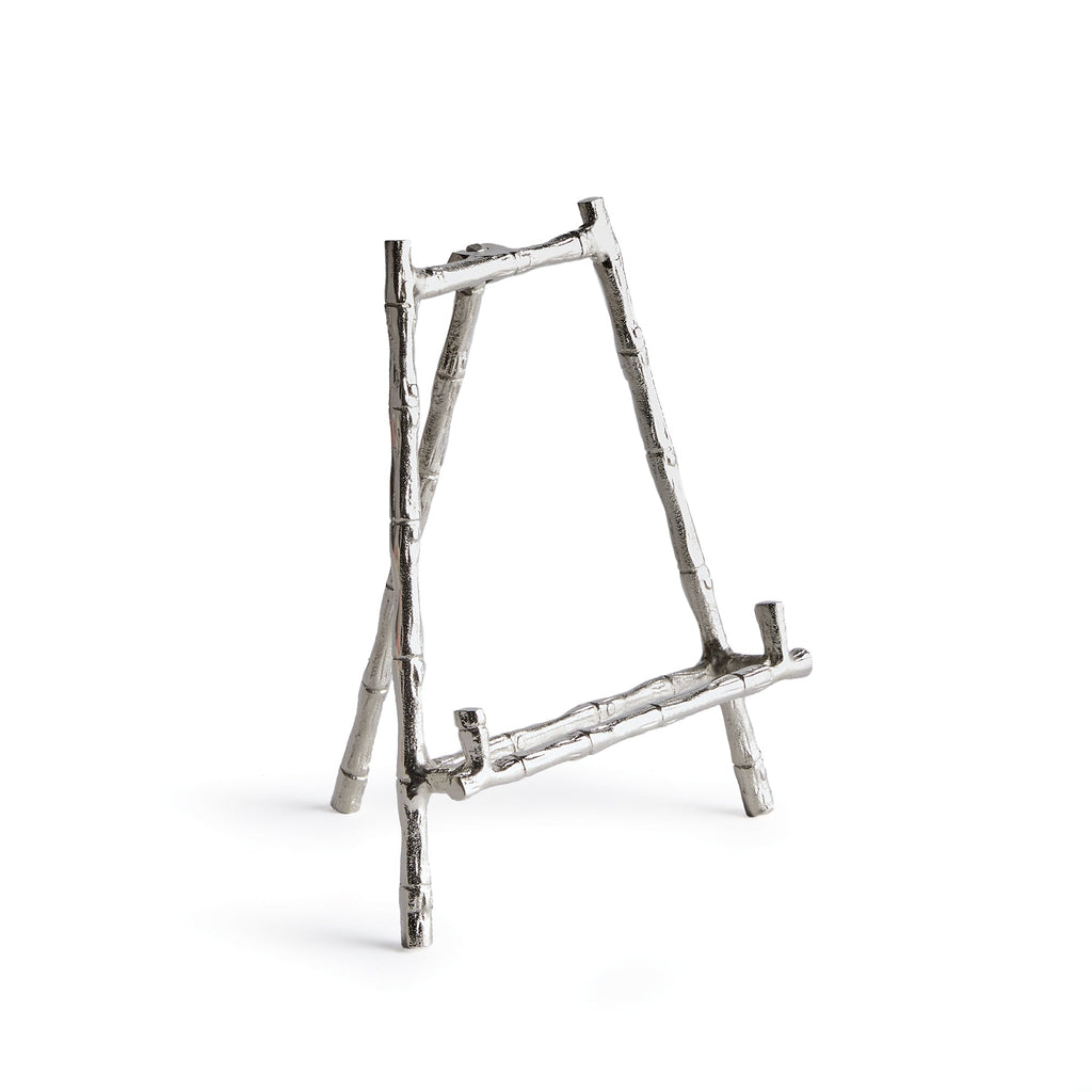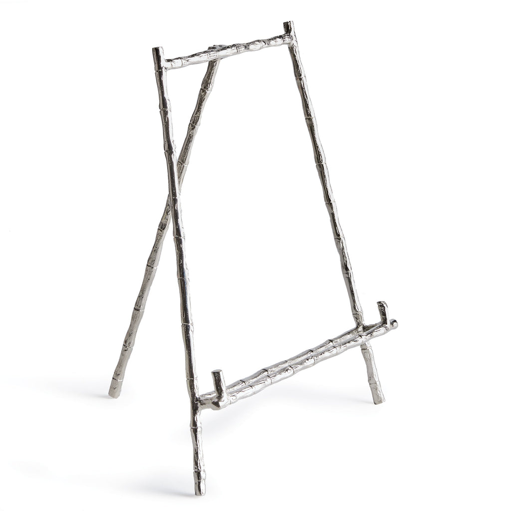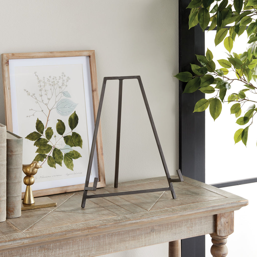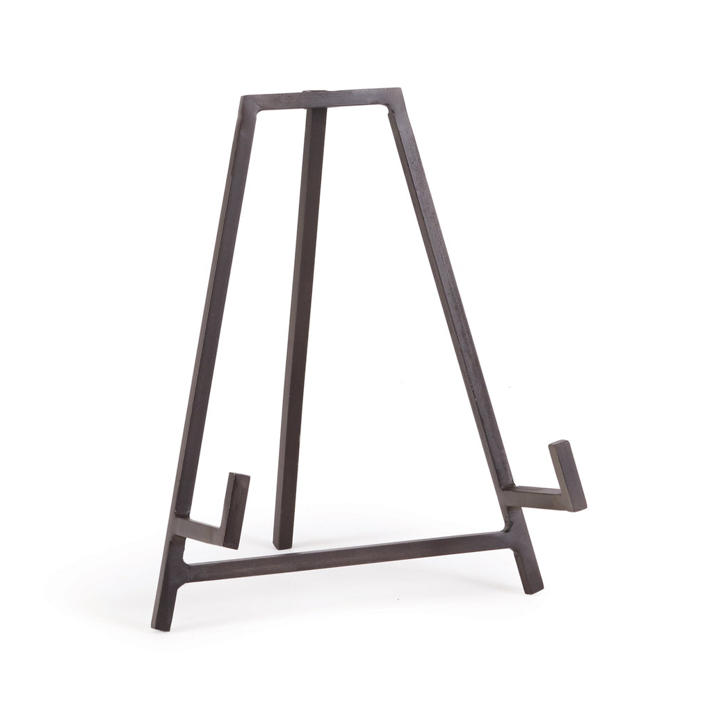 Crafted from durable iron or aluminum, these easels are designed for interior use, offering a versatile and modern display option for plates, artwork, platters, cookbooks, or framed works of art. Available in a range of sizes and finishes, including Antique Brown, Black, Gold, Silver, and White, they complement any design aesthetic, from minimalist to traditional.