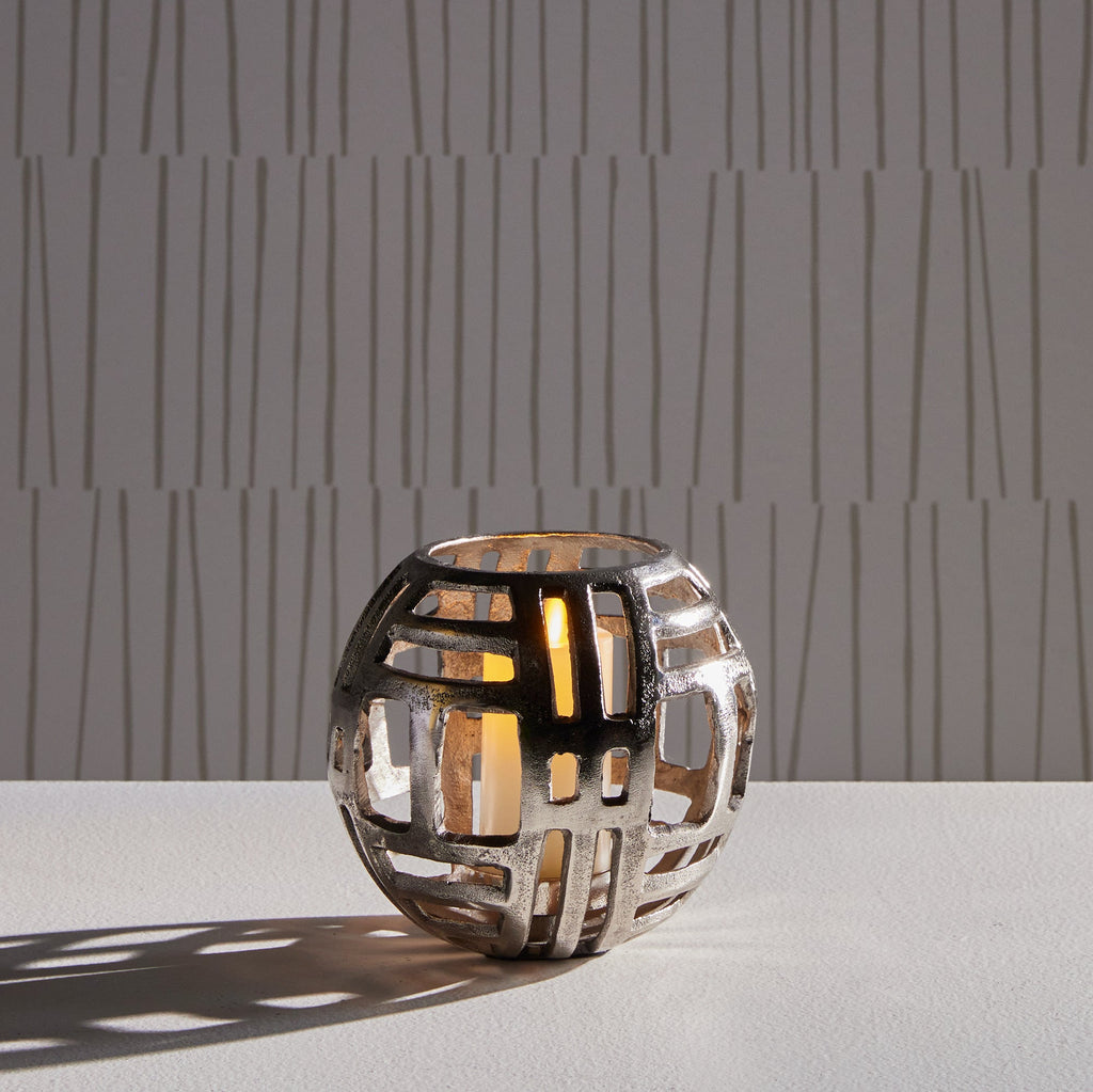 With alternating horizontal and vertical linear cut-outs, each design frames your candle in modern style, making it a fresh and elegant accent for any room.