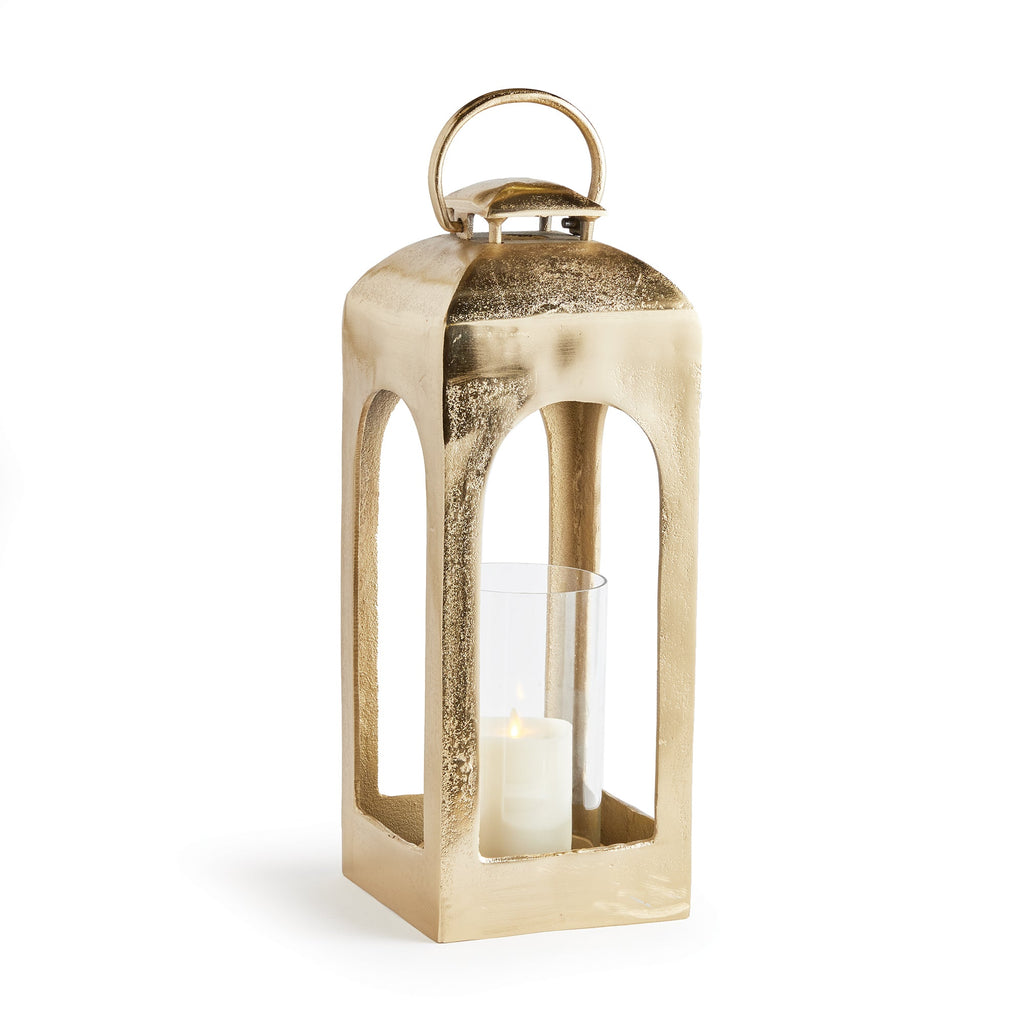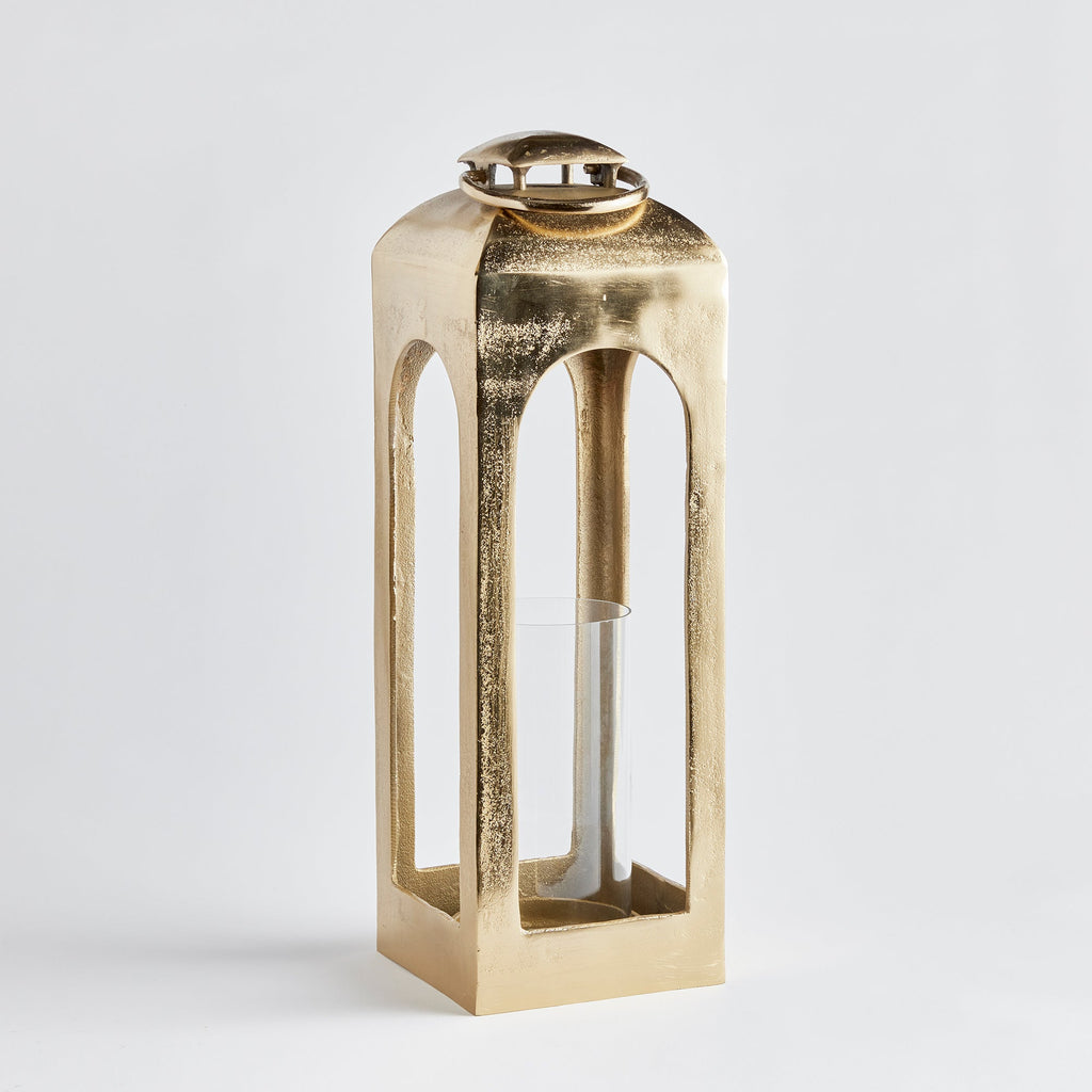 Go big on glam with this large-scale statement lantern in a champagne gold finish. Made of cast aluminum, a sophisticated look for your upscale indoor space.