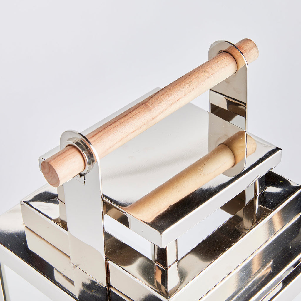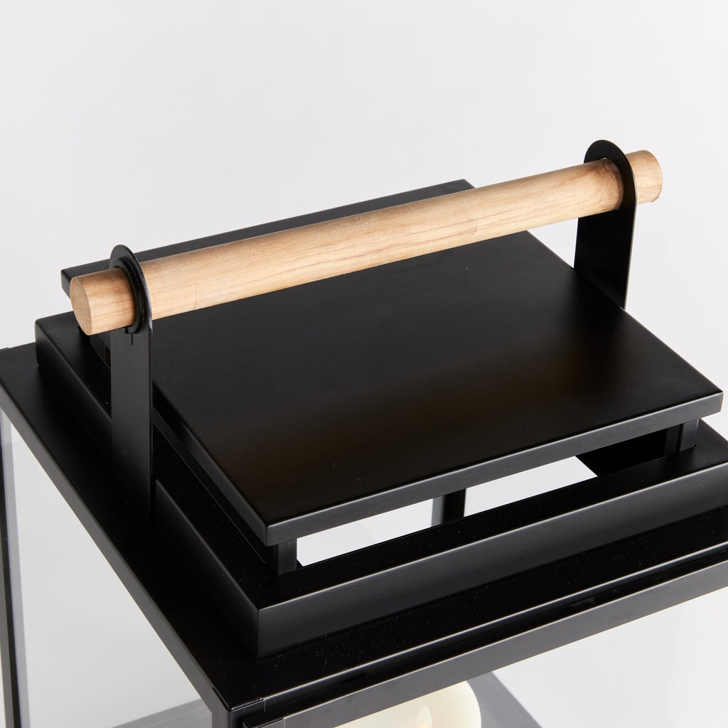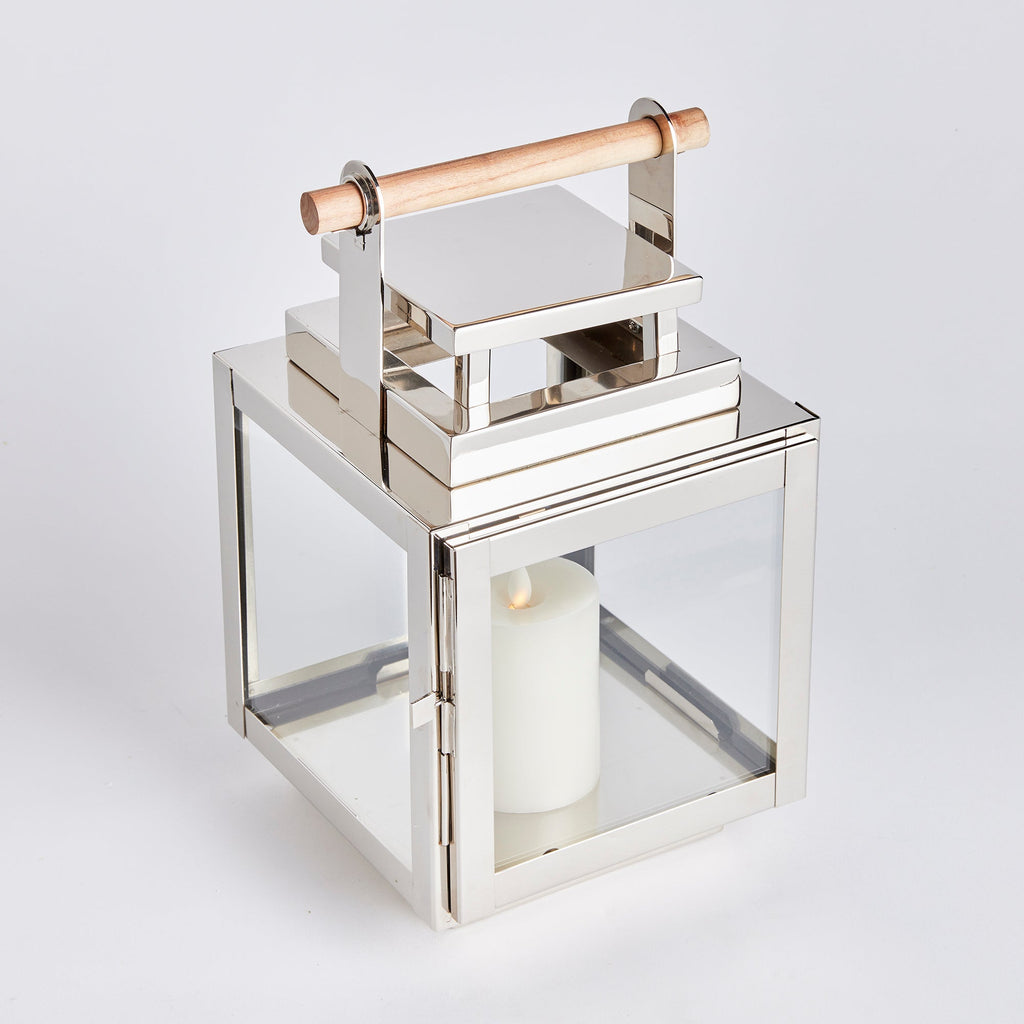 With a teak handle, wide glass panes, and tailored square profile, this outdoor lantern is a handsome look for patio, porch, or lanai. An exclusive design you won't see anywhere else.