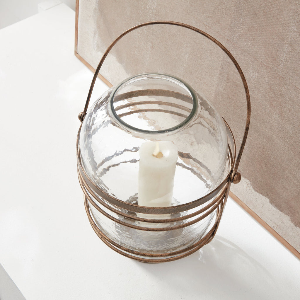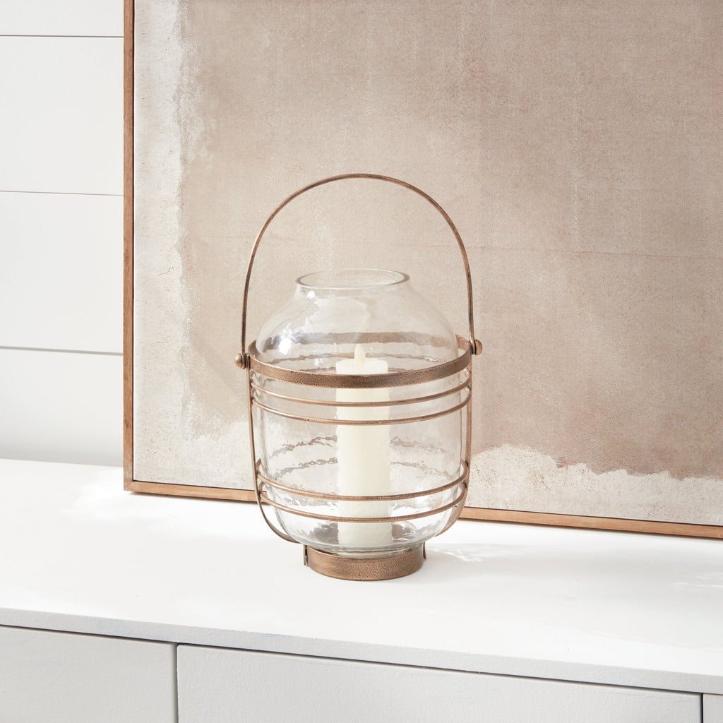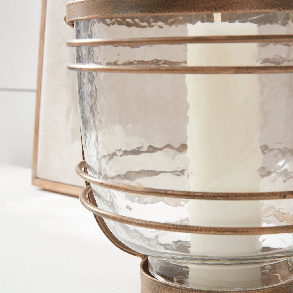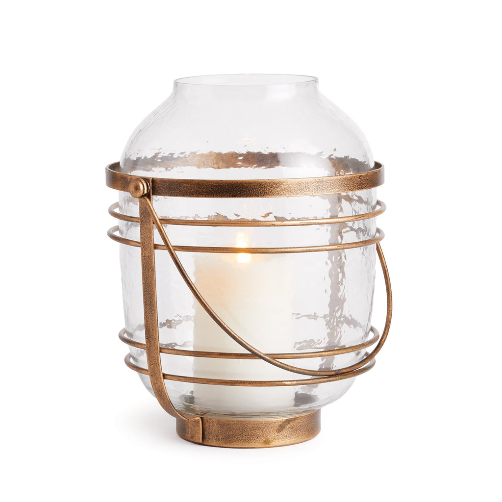 The San Luis Hurricane is crafted in a coastal style, perfect for evoking memories of weekends at the Cape. It features a striking combination of antique gold and hammered glass, adding a touch of elegance to any interior setting. Please note that a candle is not included. For safety, use only LED flameless candles when specified and never leave a burning candle unattended.