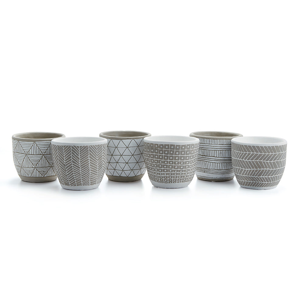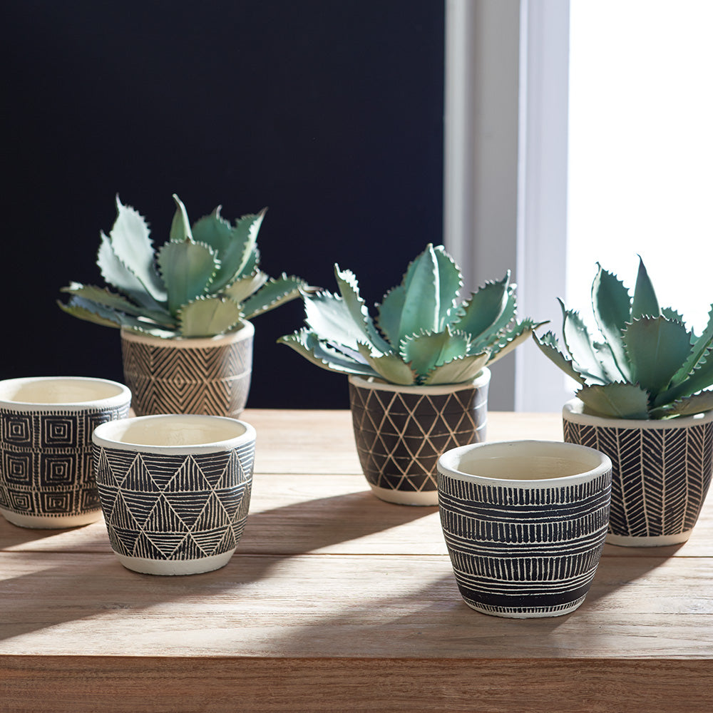 In a modern mix of playful patterns, this set of clay pots is a nod to the Santa Fe art scene. Perfect for housing your favorite herb garden along the windowsill.