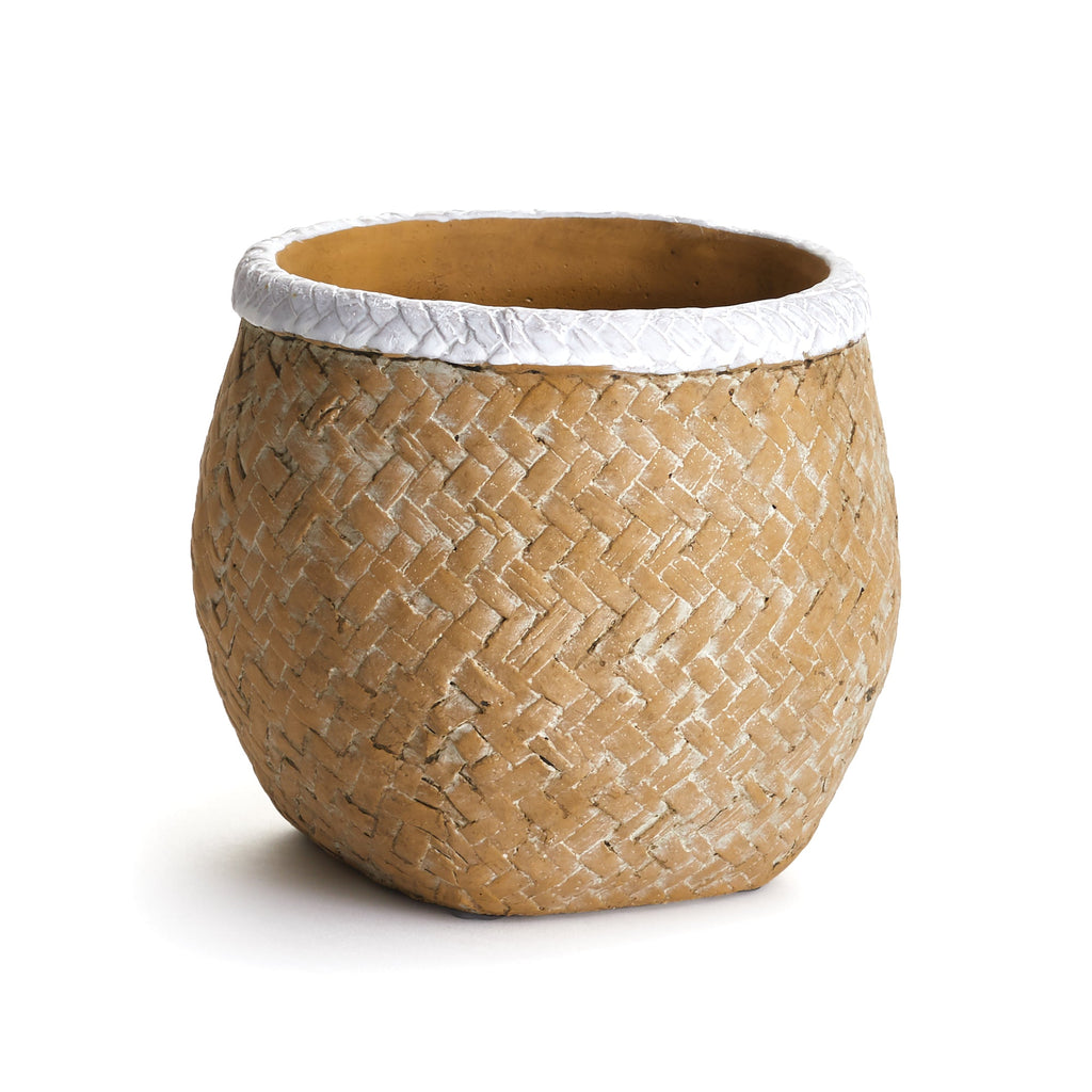 Made to look like basketry, this pot adds a soft, organic touch to the home. Sturdy enough for the outdoors, yet stylish enough for the kitchen table.