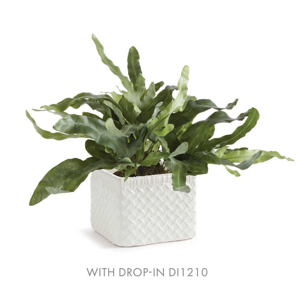 This clean, white cachepot is made in classic style. Choose from chinoiserie-inspired bamboo details with a rounded shape or a simple square shape with a traditional caning weave pattern. Fill it with your favorite blooms and enjoy!