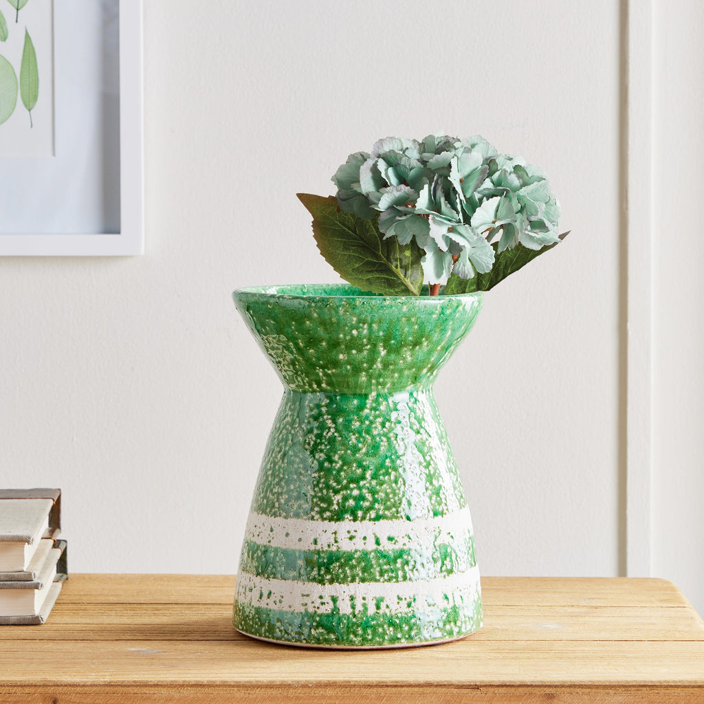 Discover the elegance of our handcrafted ceramic vases, available in various sizes and color combinations such as Blue/White and Green/White. Each piece is meticulously crafted by skilled artisans, ensuring every vase is unique and showcases slight variations in size and color.