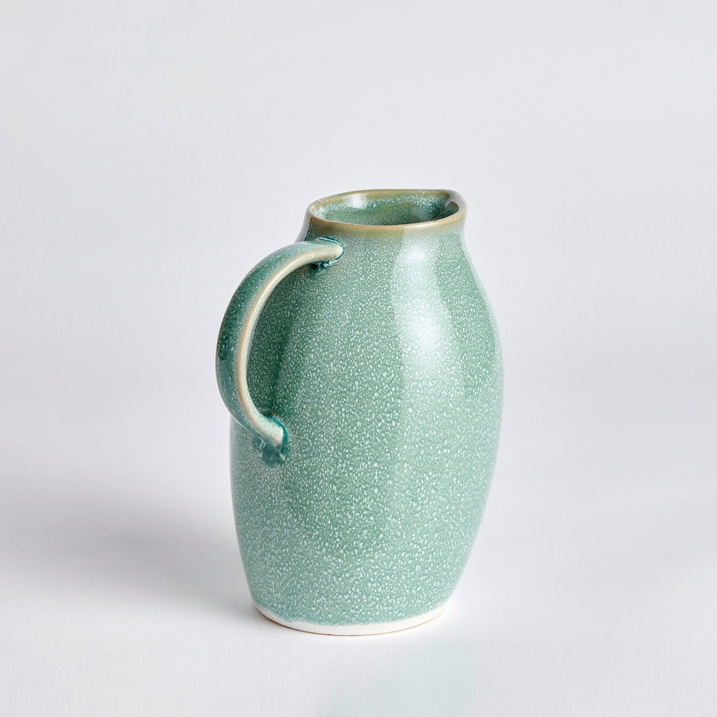 This bud vase is simple in form, but sits with an unexpected lean. Finished with a rich, reactive glaze, it is a charming accent for console or bookshelf. It's all about the glaze, isn't it?