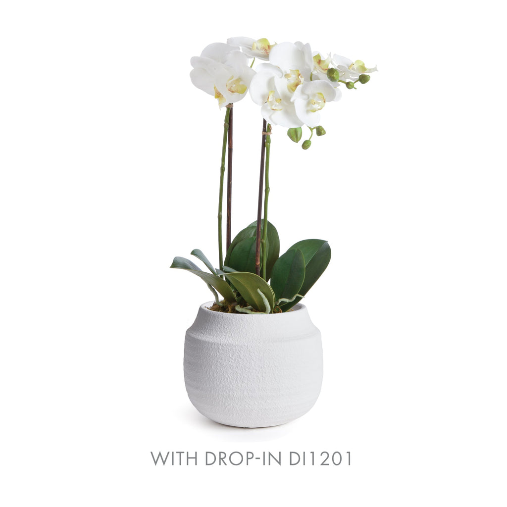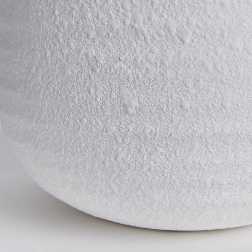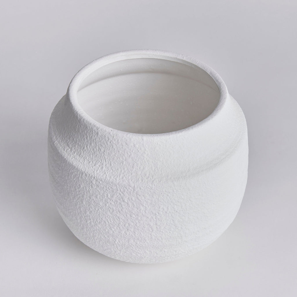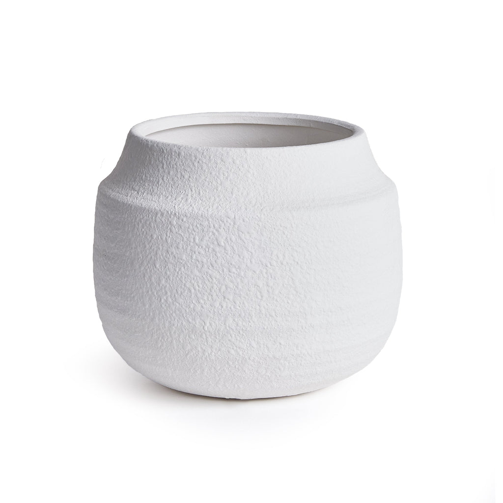 Simple in form with a modern aesthetic, this cachepot is the definition of less is more. Finished in a matte glaze, it brings a calm, tranquil feel to any modern space. Pair it with a faux lush greenery drop-in or display as is for a clean look.