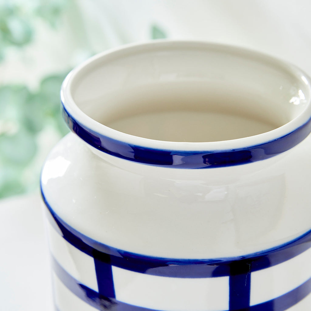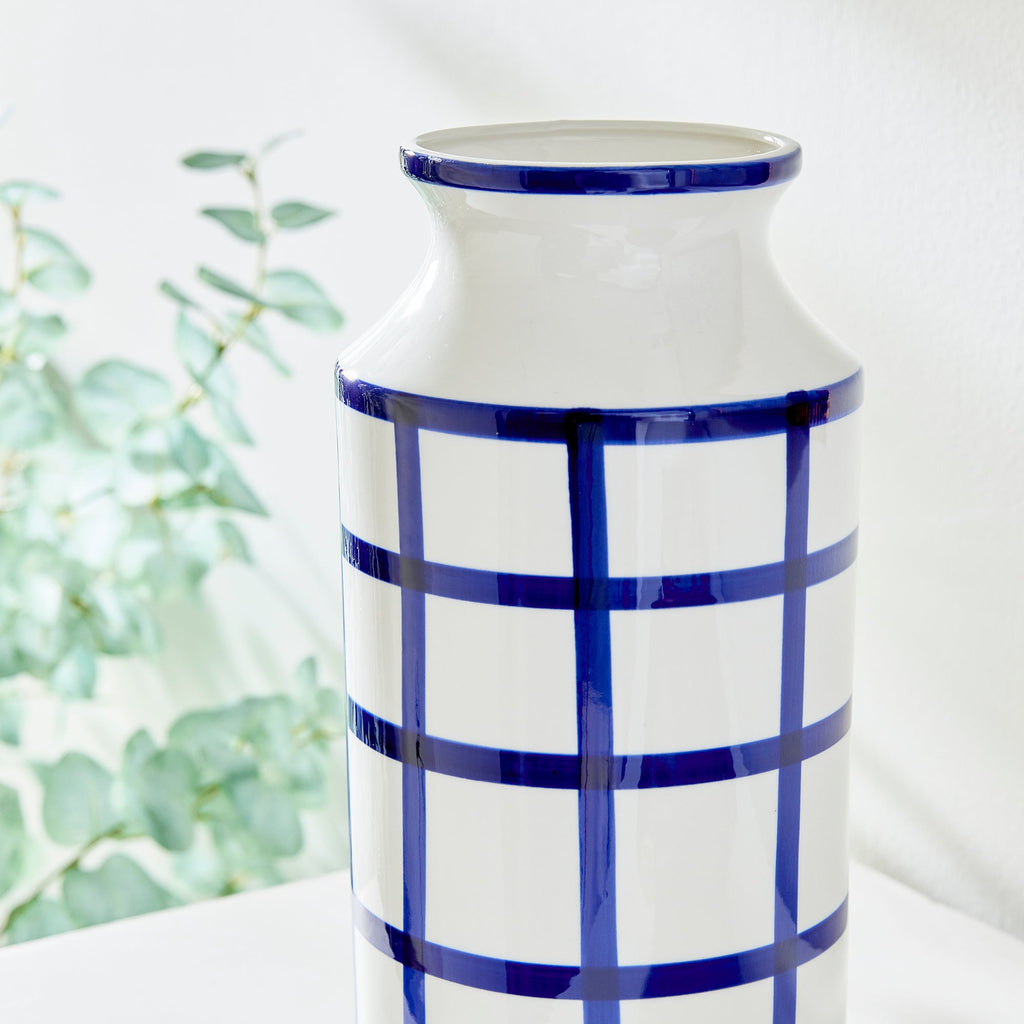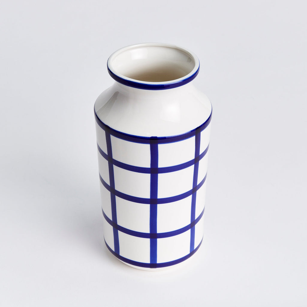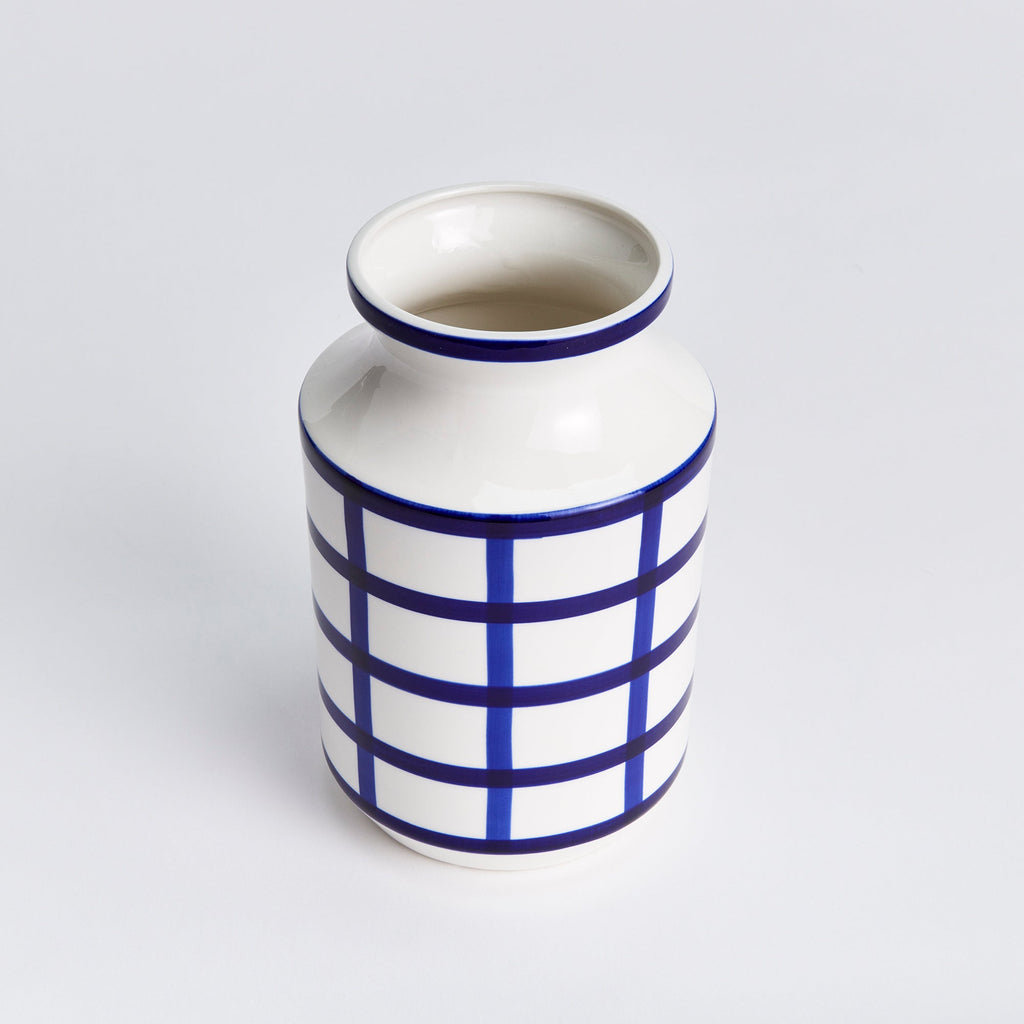 With a hand-painted plaid pattern, this vase by Barclay Butera adds a graphic pop of blue. Add your favorite stems or display as is for a fresh, clean look.