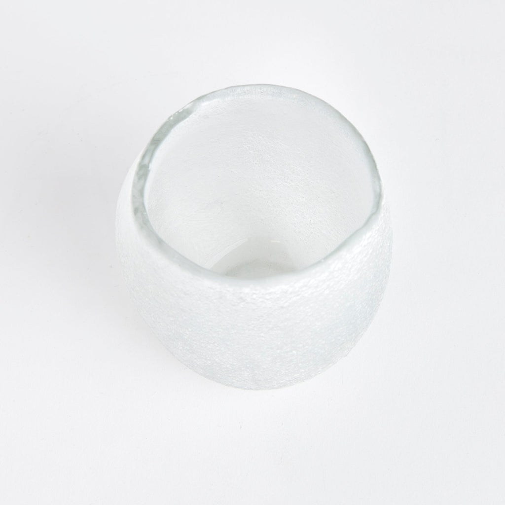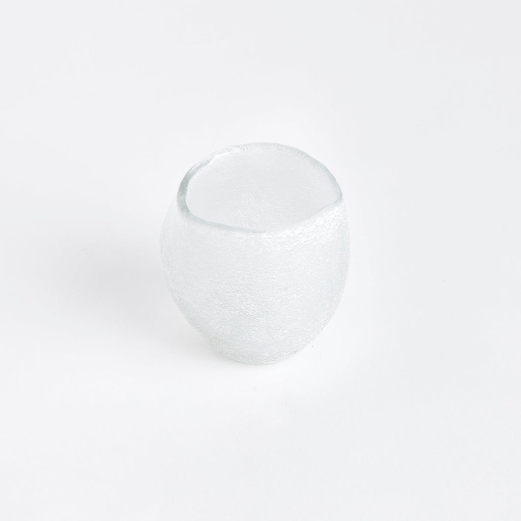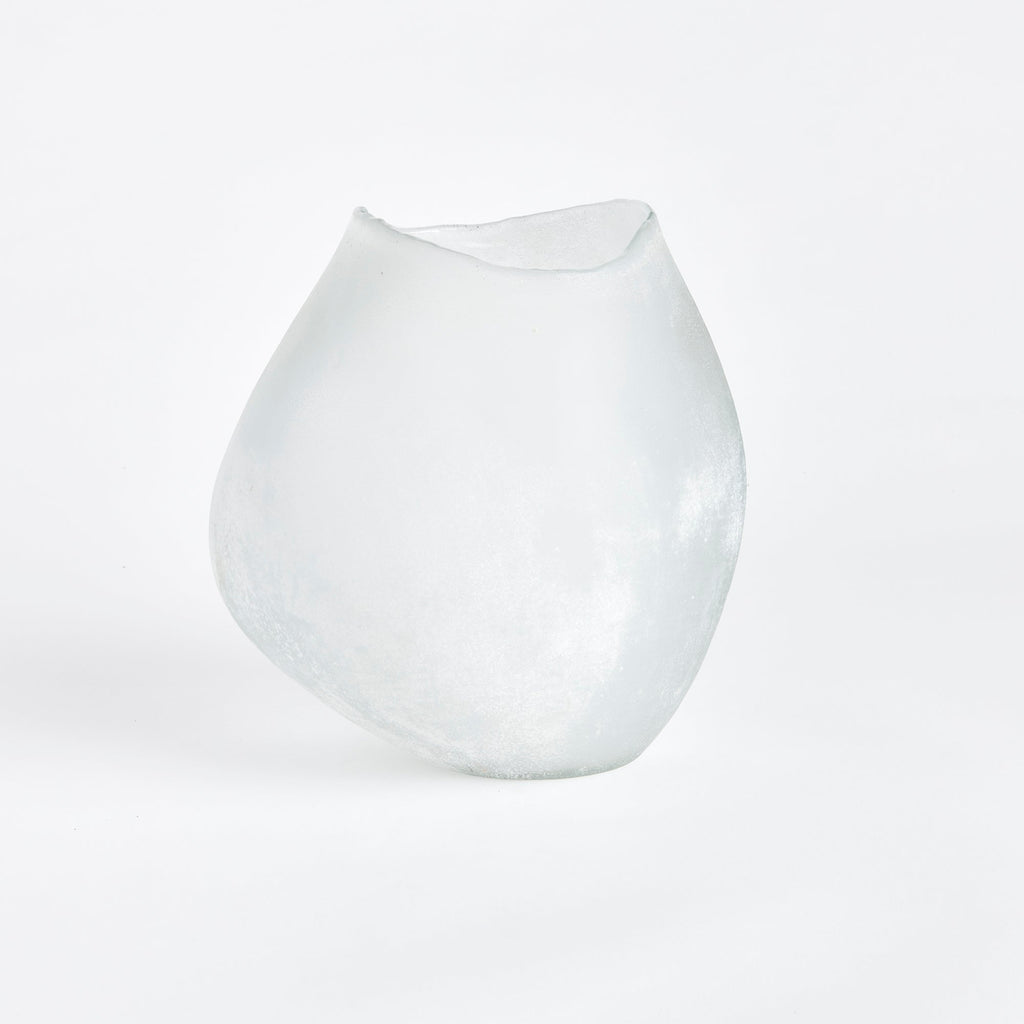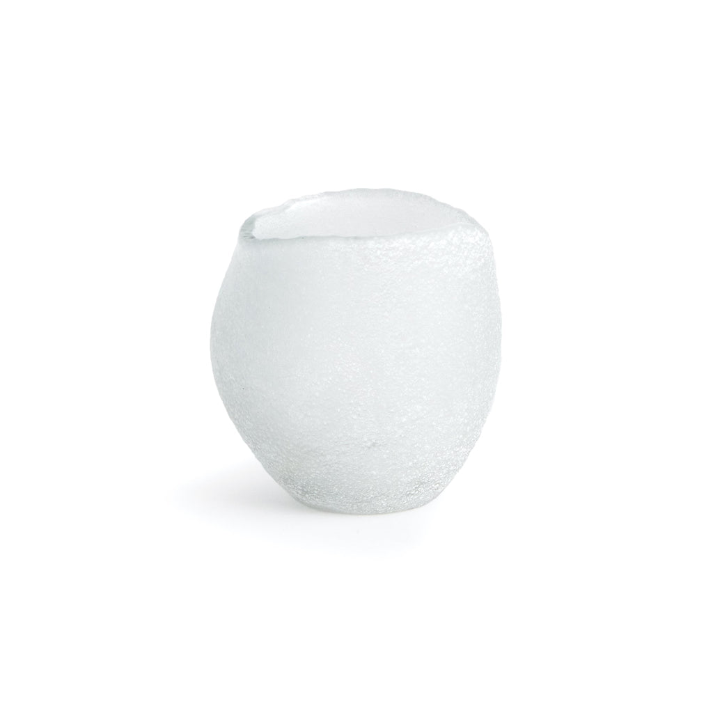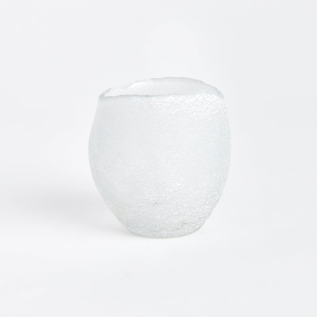 Nature-inspired, this hand blown glass collection features pieces with a bulbous shape and melted edge rim detail. The frosted glass enhances its appeal. These items are a beautiful addition to any bookshelf, mantel, or side table, adding character and charm to traditional spaces.
