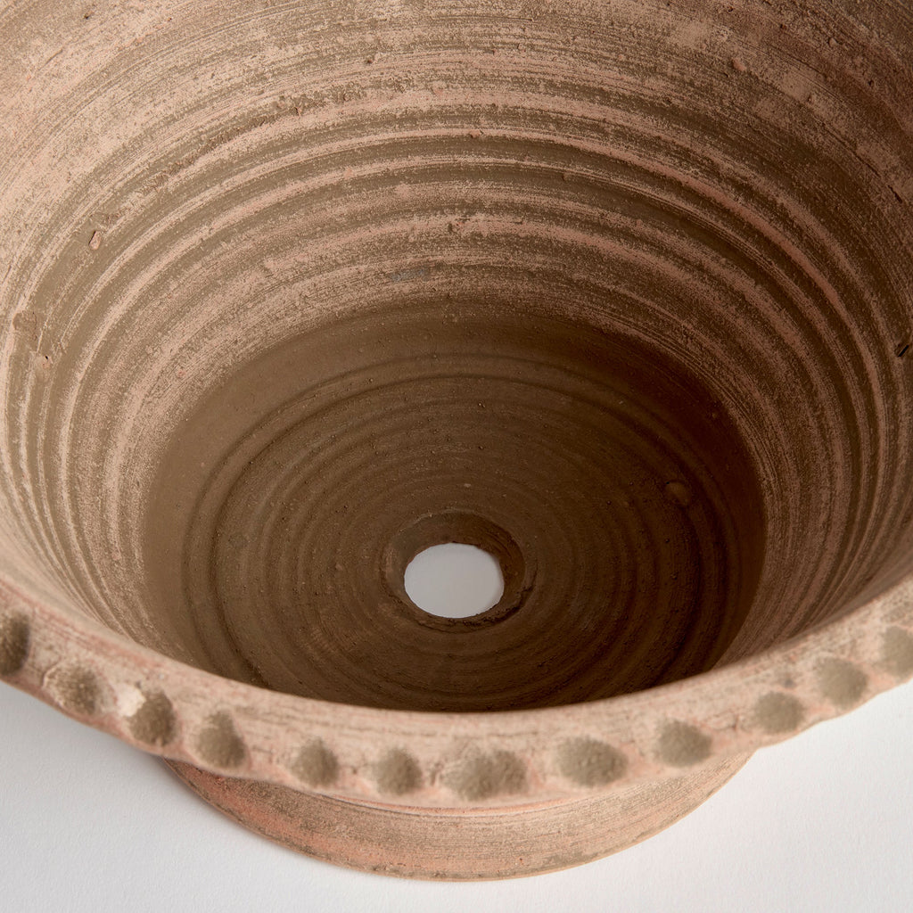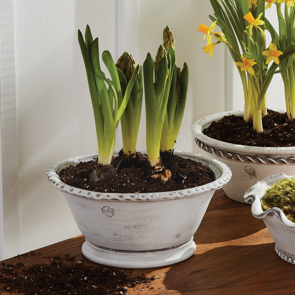 This signature pot was created for forcing bulbs in winter, specifically for amaryllis, paperwhites, snowdrops, crocus, hyacinths, daffodil, or tulips. Designed by master potter Peter Wakefield, one of an exclusive set and handmade in Honduras. Add a glass cloche to aid in the forcing process, and garden just like a master!