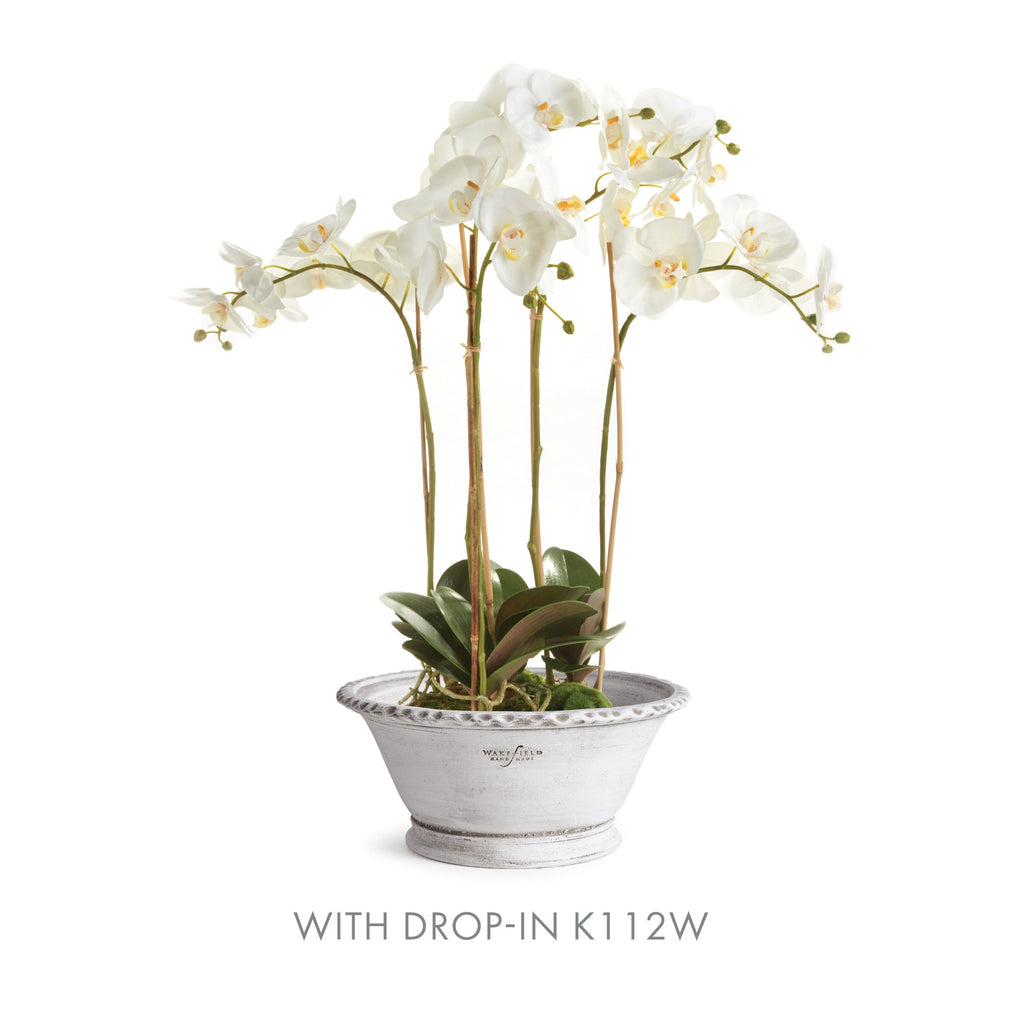 Use as cachepot or plant directly into. Protect fine furniture by lining the interior of the pot. Protect from frost and hard freeze.