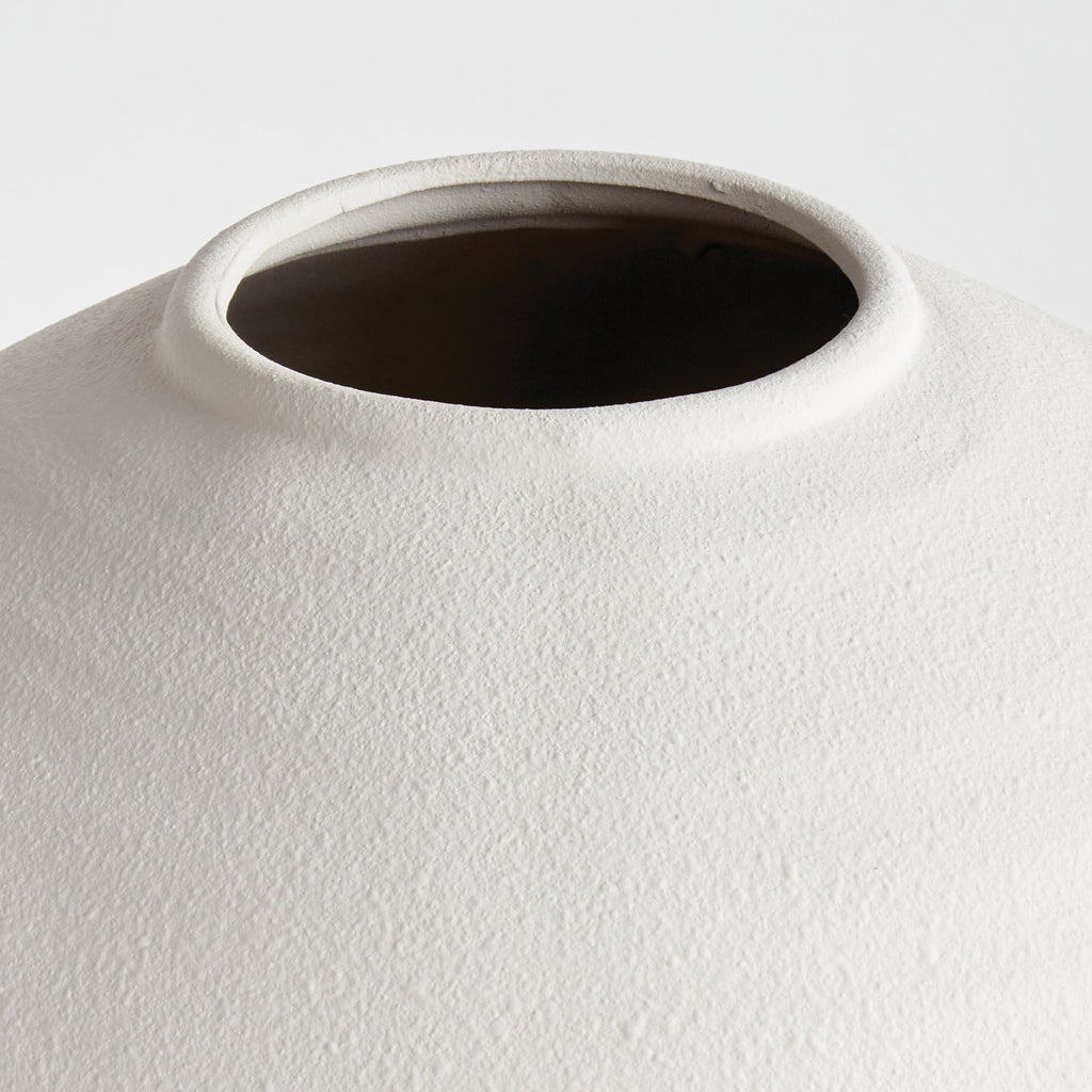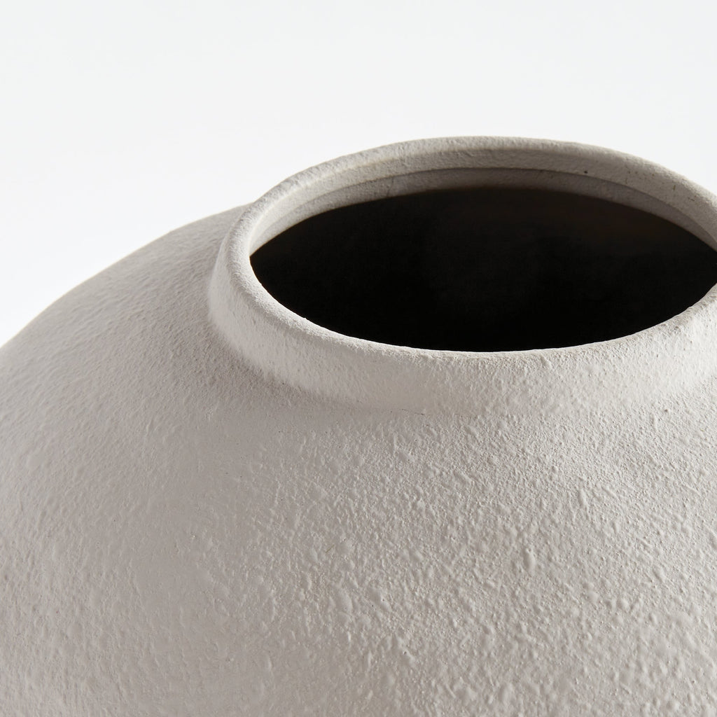 It's really all about the texture. This extraordinary terracotta vase is cold fired, creating a matte, satin-like finish. This evokes a sense of coolness or austerity. Add a couple of faux stems for just a touch of drama.