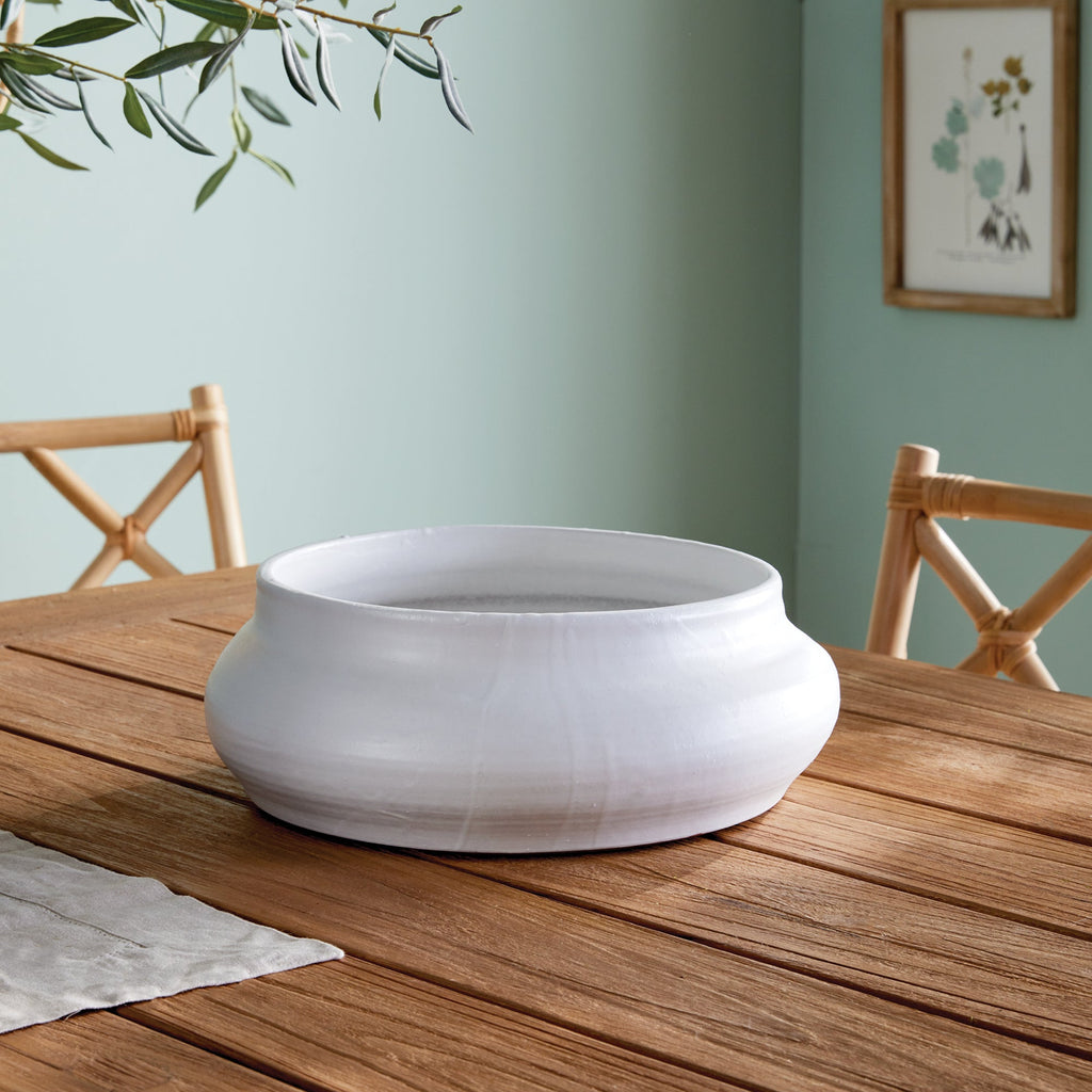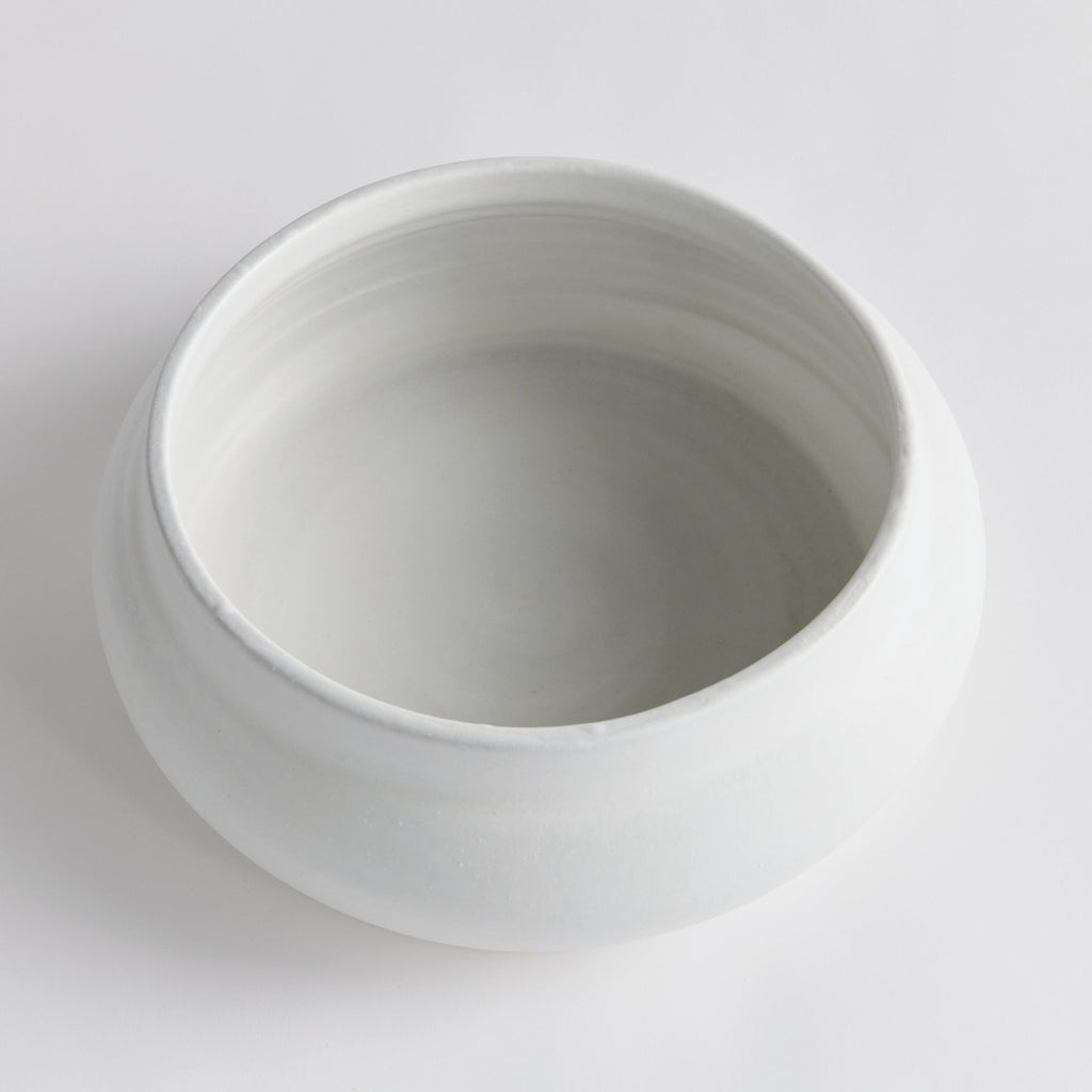 Hand thrown and perfectly imperfect, this terracotta bowl brings character. With subtle horizontal ribbing that shows through the uneven glaze, it makes a lovely accent tucked in a bookshelf, or featured on a mantle or console.