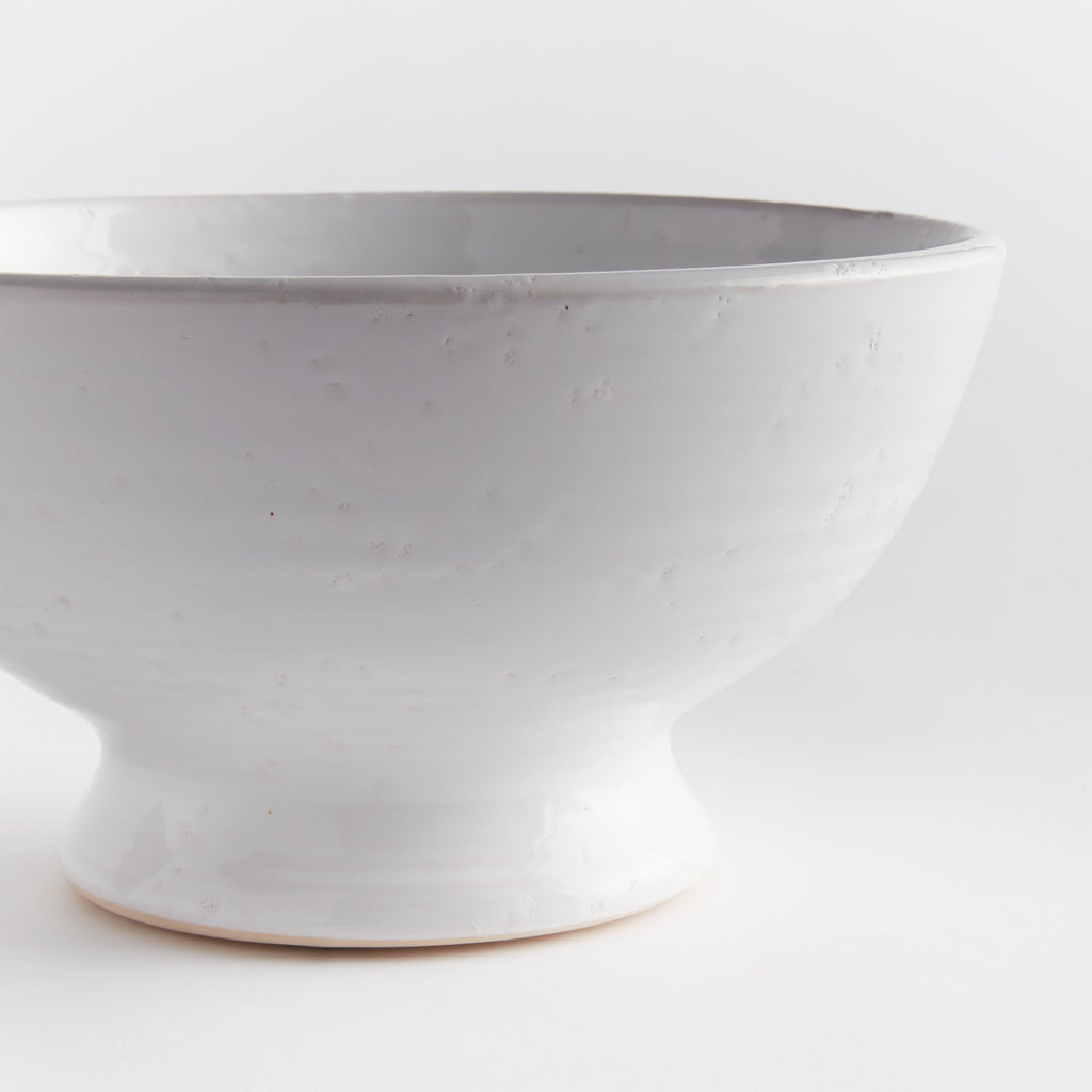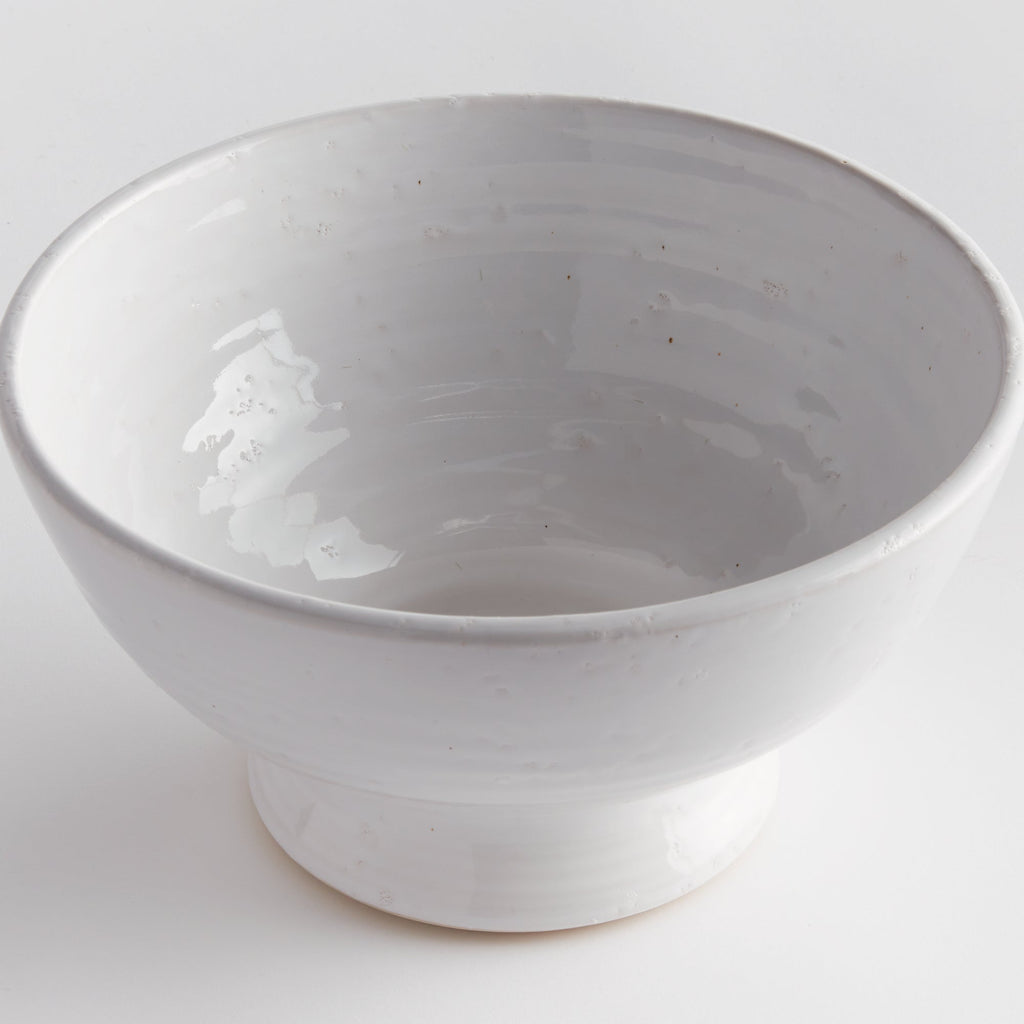 Subtle throw lines and natural textures from the firing process give this terracotta bowl a vintage look. Finished in a warm white glaze, it is beautiful displayed as is, or add a few natural orbs for added texture and color.