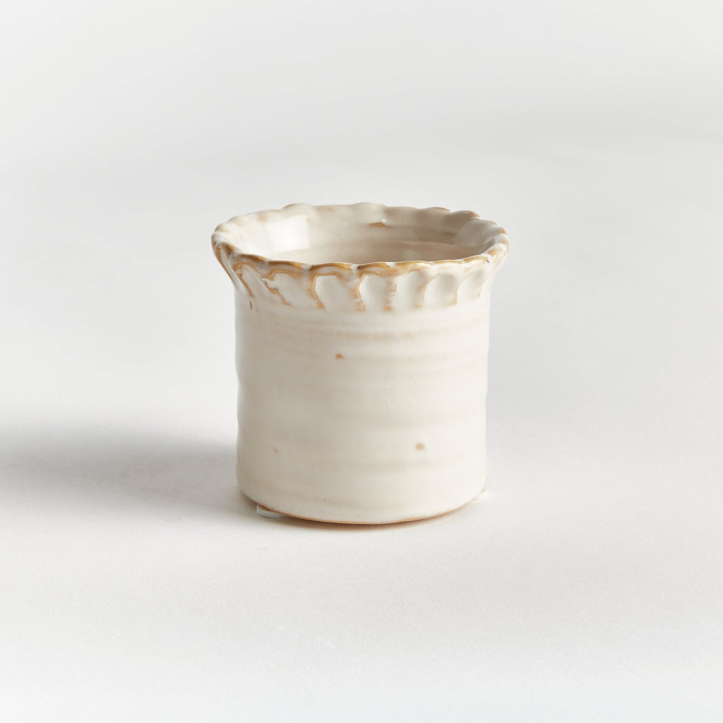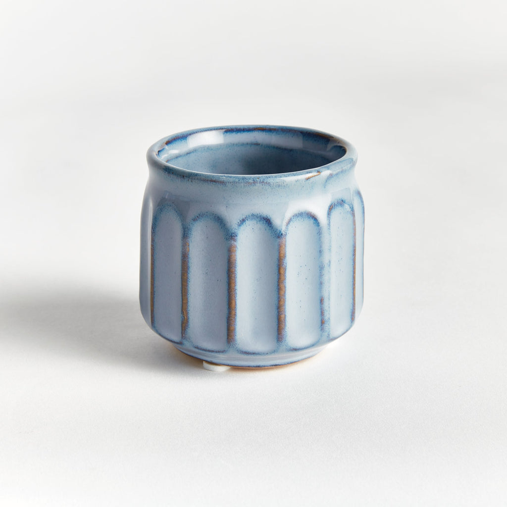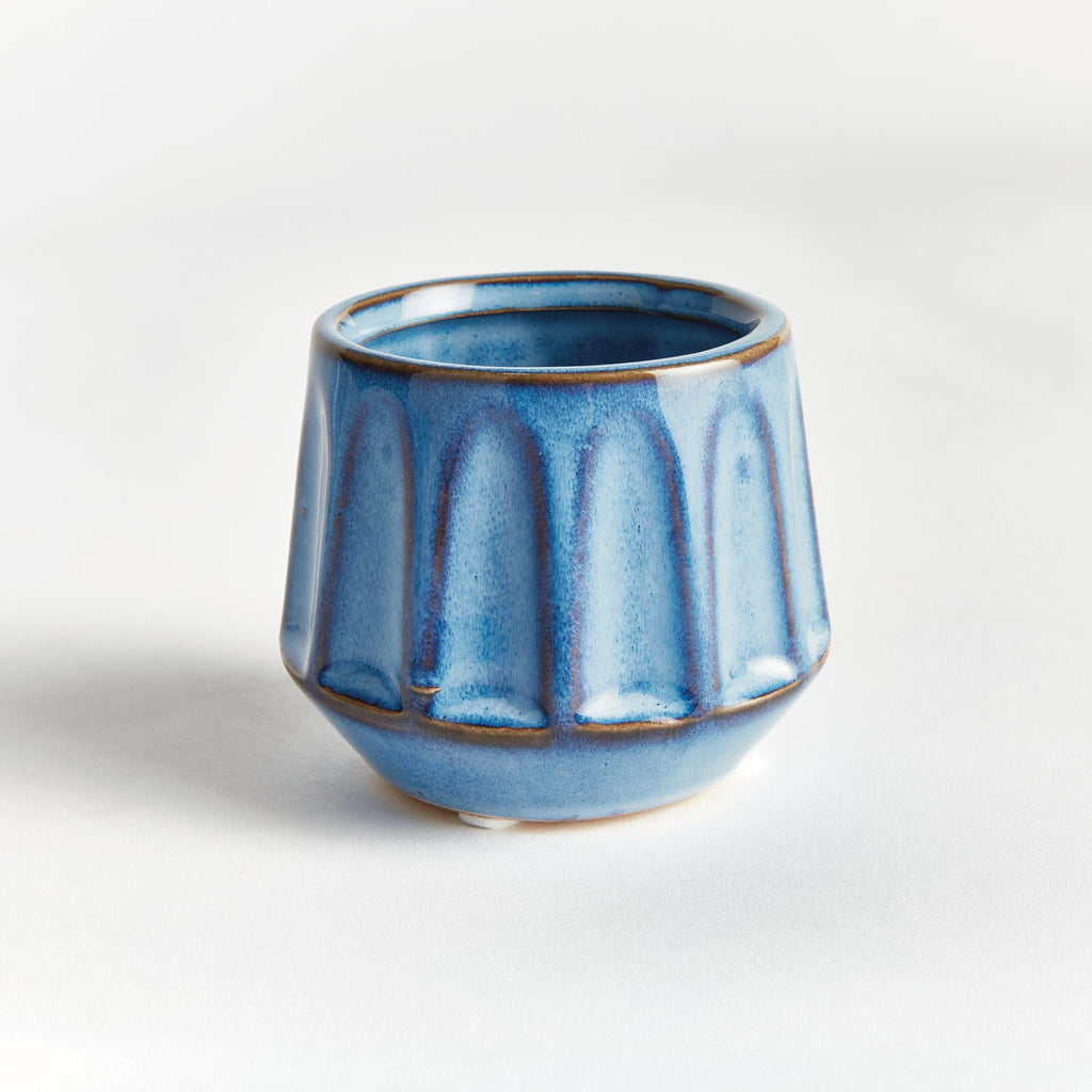 With an eclectic mix of organic forms, this set of six mini pots are simply adorable. What makes them so unique is the deep, aqueous reactive glaze. Made of high-fired stoneware, the rich depth of color is on full display.
