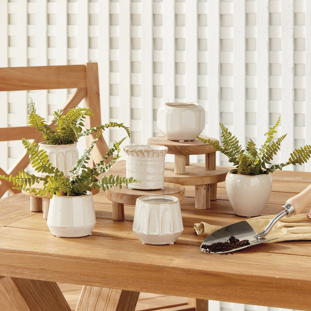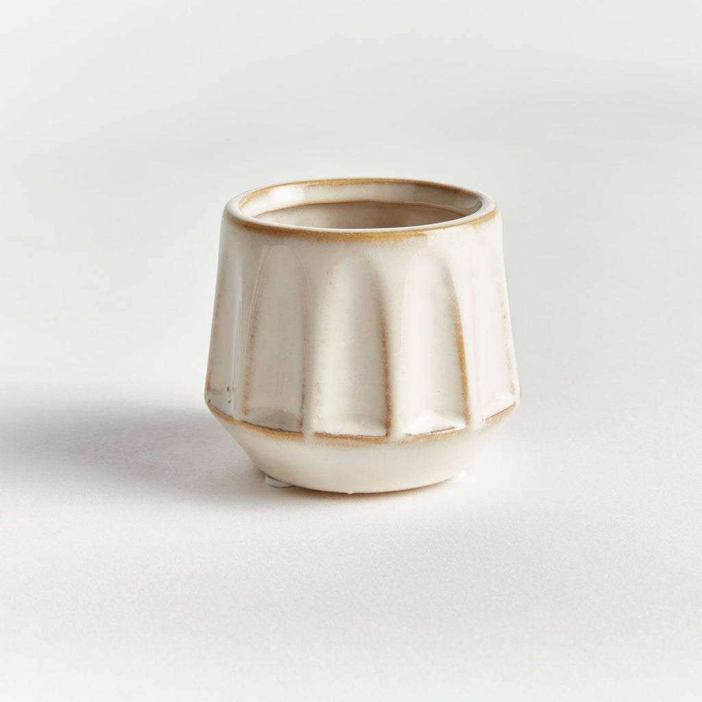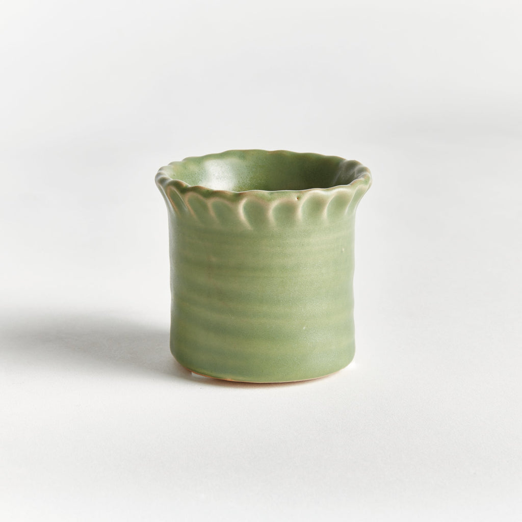With an eclectic mix of organic forms, this set of six mini pots are simply adorable. What makes them so unique is the deep, aqueous reactive glaze. Made of high-fired stoneware, the rich depth of color is on full display.