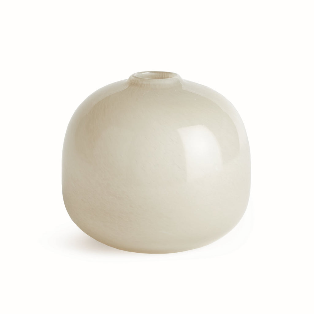 A modern update to the simple glass form, our mouth blown vase is made with pot color, not sprayed. A classic design in a soothing color, providing either a neutral or dynamic touch to complete your side table, coffee table, or ottoman.