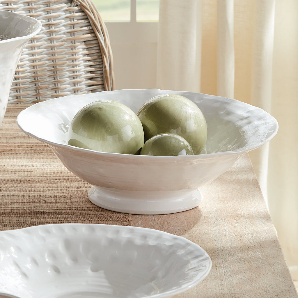 Each bowl is hand thrown and lightly pounded for texture, offering a blend of elegance and artisan details. The Sorrento Decorative Bowl is a true masterpiece, perfect for enhancing the aesthetic of your kitchen island, console table, or ottoman. Please note, it is intended for decorative interior use only. To maintain its beauty, dust with a dry cloth and protect fine furniture by lining the interior of the pottery when necessary.