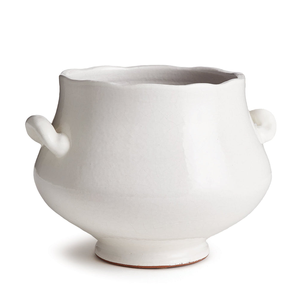 The Wellon Cachepot is an elegant decorative vessel designed for interior use. Its organic rim and curvy shape make it an instant classic, perfect for enhancing your space's aesthetic. Available in white ceramic, this cachepot does not have a drain hole and is intended for decorative purposes only. Please do not use it with water or plant directly into it; instead, use it with an inner pot or liner. Avoid using harsh chemicals to maintain its pristine appearance.