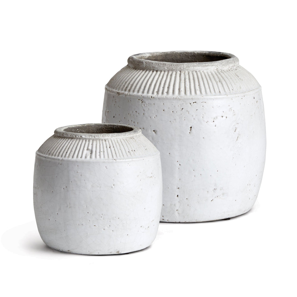 The Etruia collection features a rough texture and uneven glaze, providing each piece with a distinctive, porous, and pocked surface that reacts uniquely to its glaze. Meanwhile, the Conservatory collection is characterized by a rich white glaze, uneven texture, and basic form, reminiscent of a freshly made ceramic piece direct from the hands of the artist.