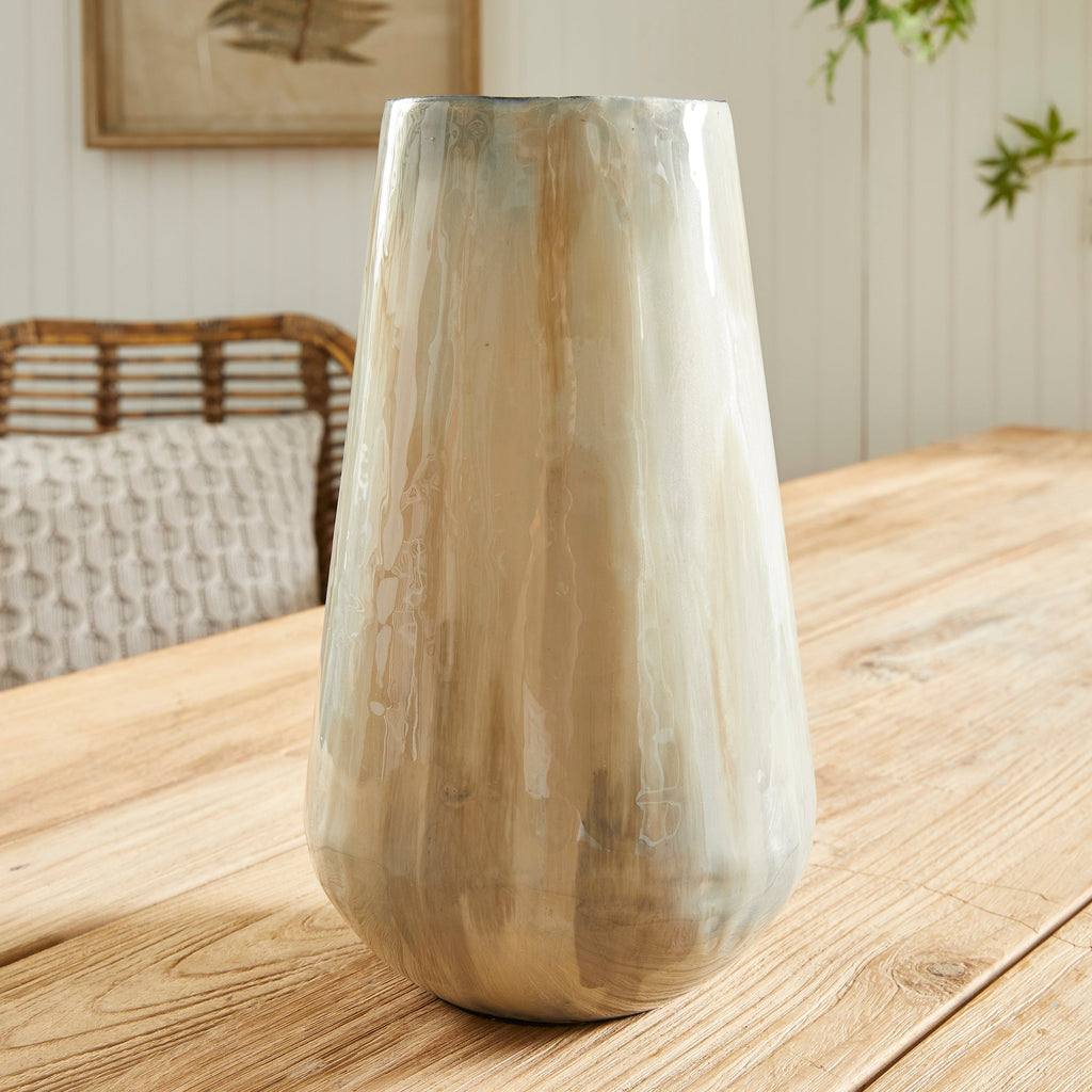 In a clever use of enameled iron, these lightweight beauties are painted by hand. Each one prettier than the next, creating a light, creamy tone-on-tone design.