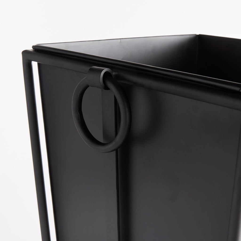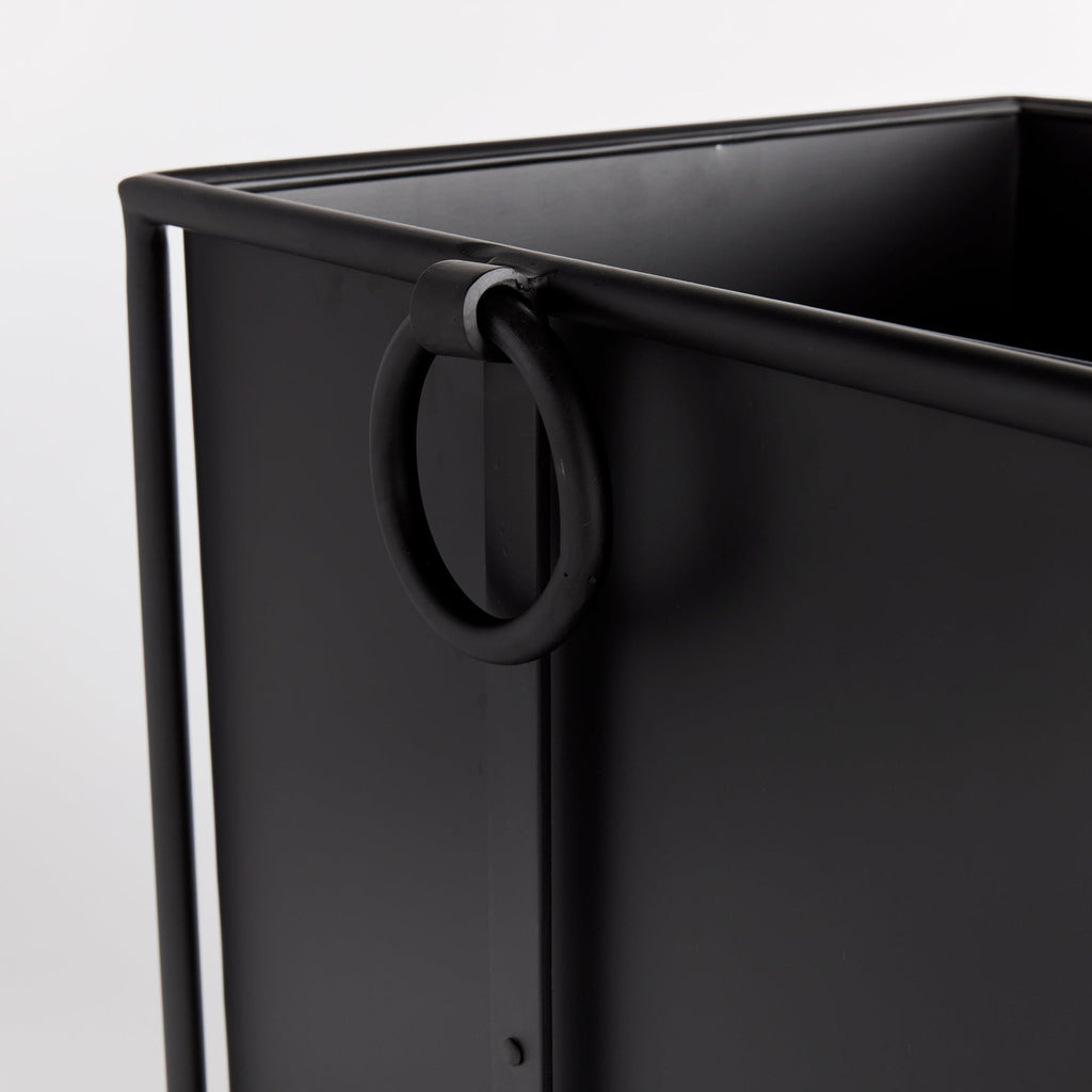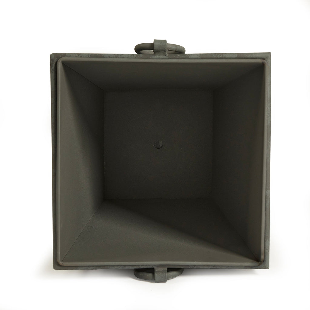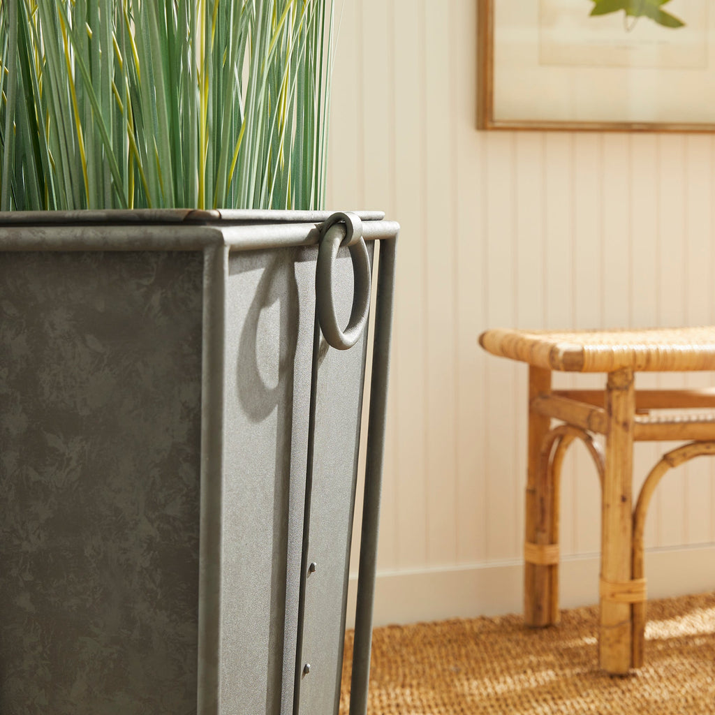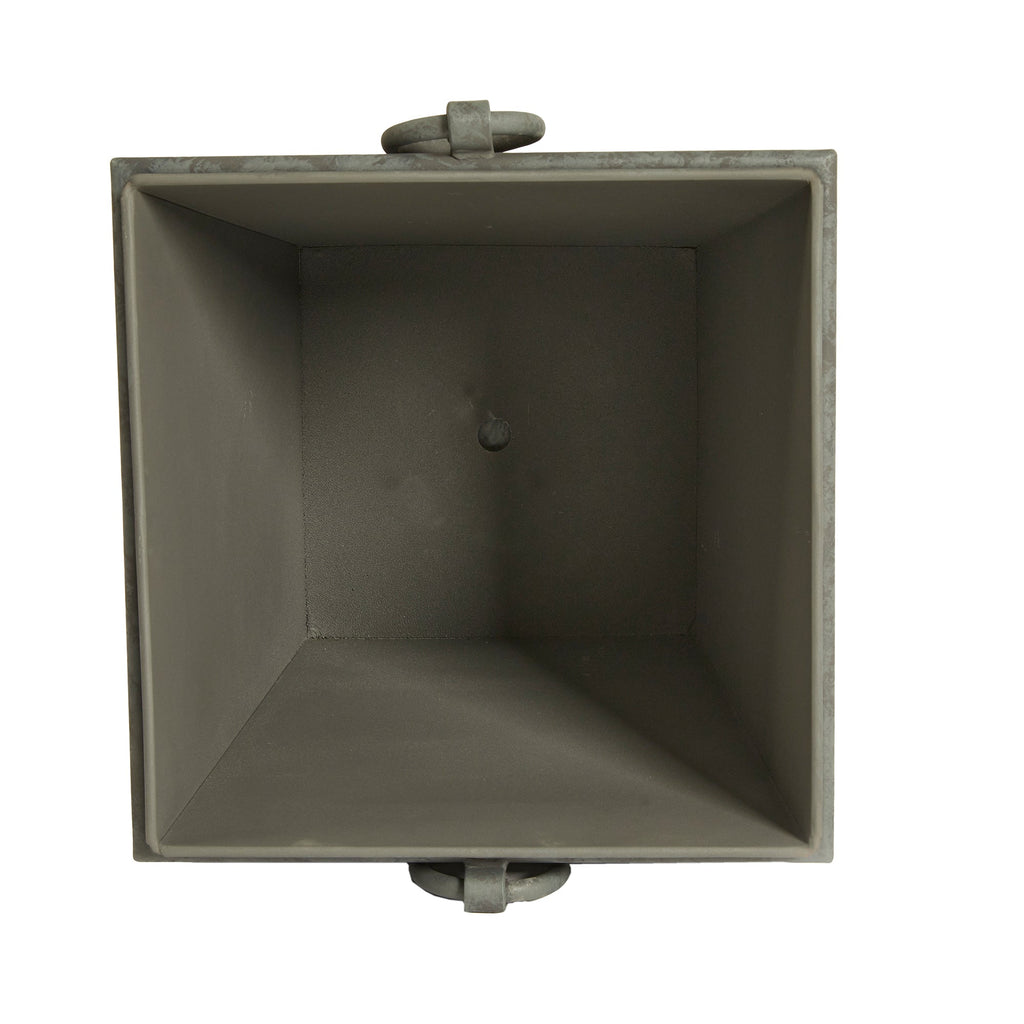 The Callahan Planter collection is crafted from durable iron and comes in two elegant finishes: sleek Black and Antique Gray. Each planter includes metal liners that easily slide out for convenience. The traditional design features rounded handles and integrated drain holes, making these planters perfect for any outdoor setting.