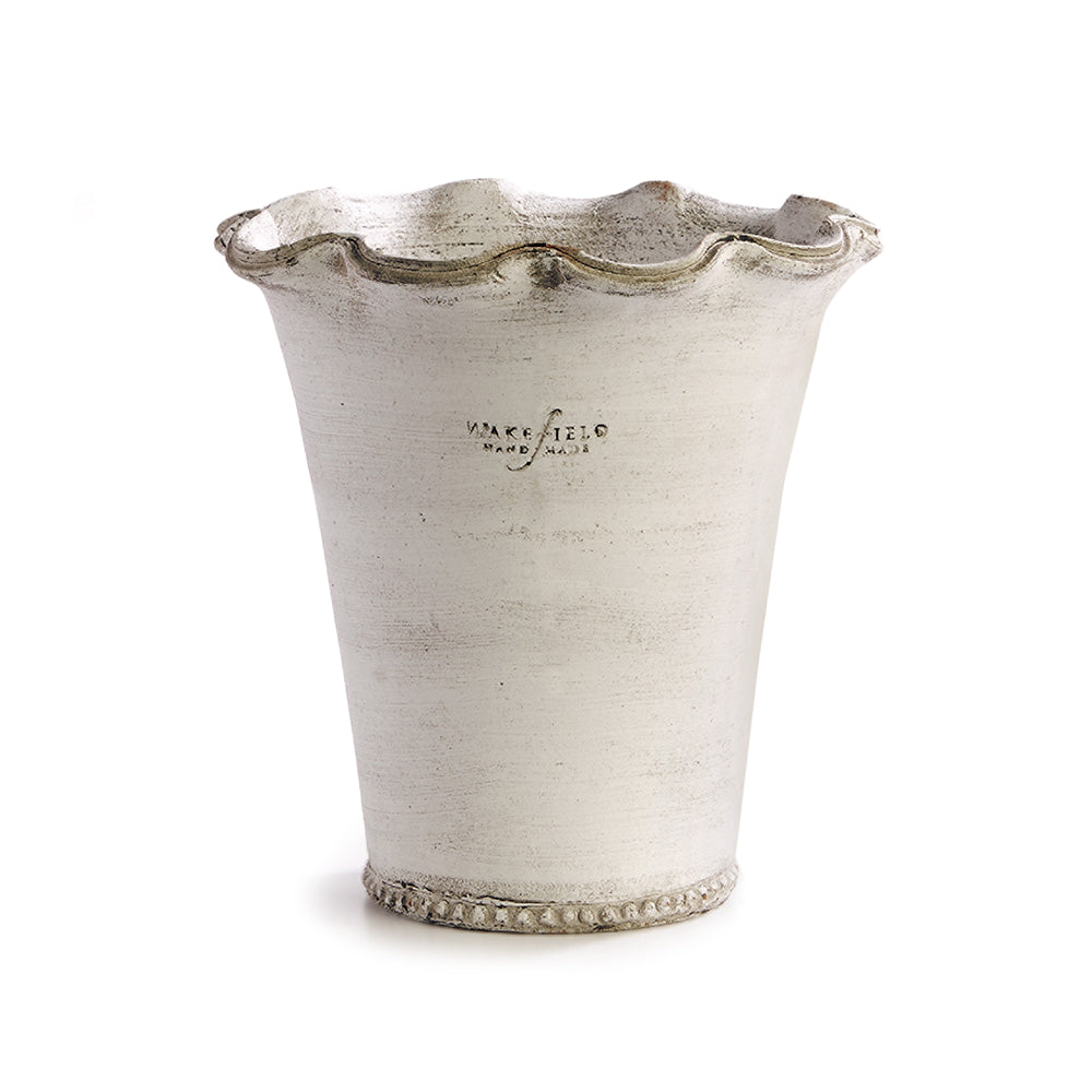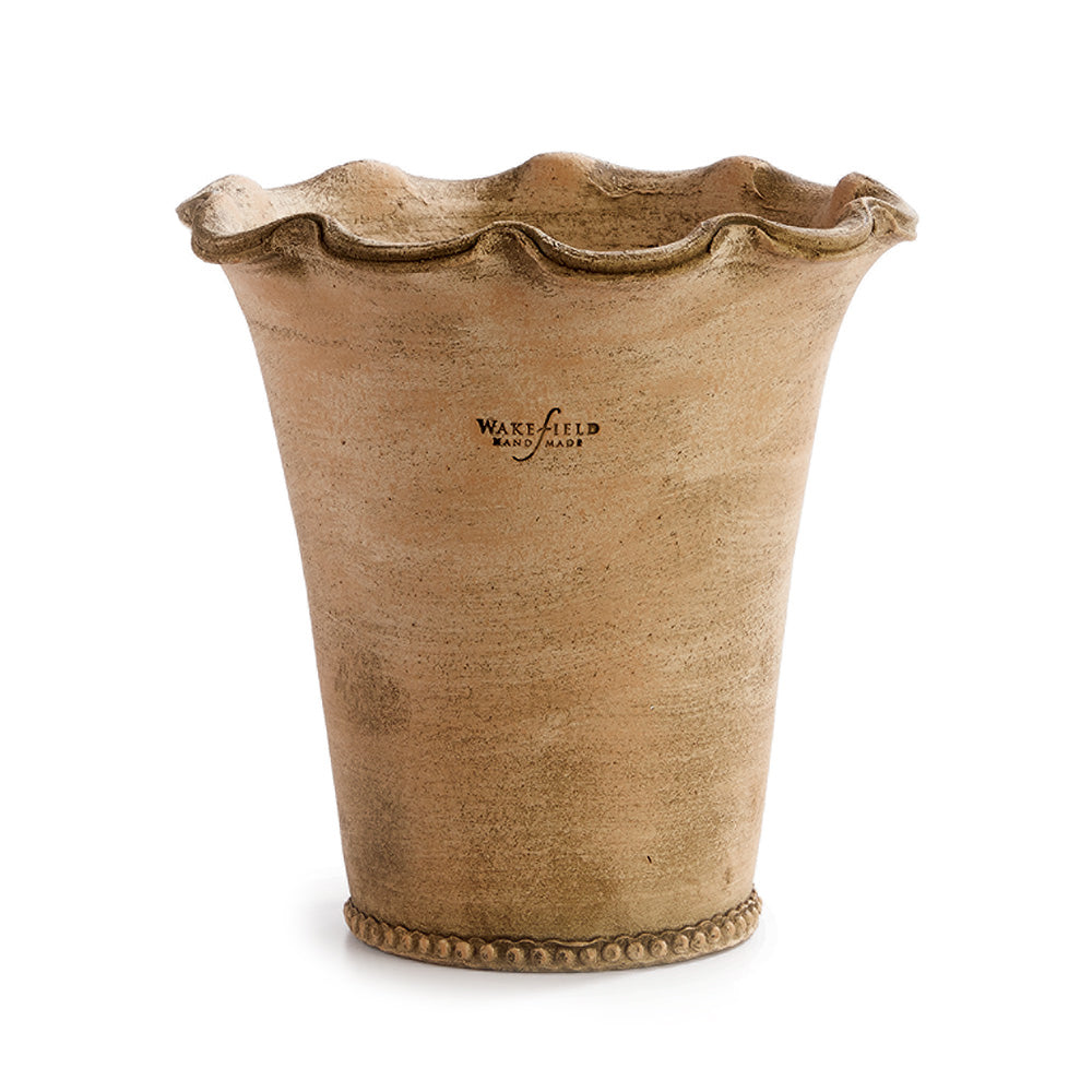 Designed by our own master potter Peter Wakefield, this piece is one of an exclusive set and handmade in Honduras. With a ruffled opening and beaded detail along the bottom, the Festonee offers a feminine design.