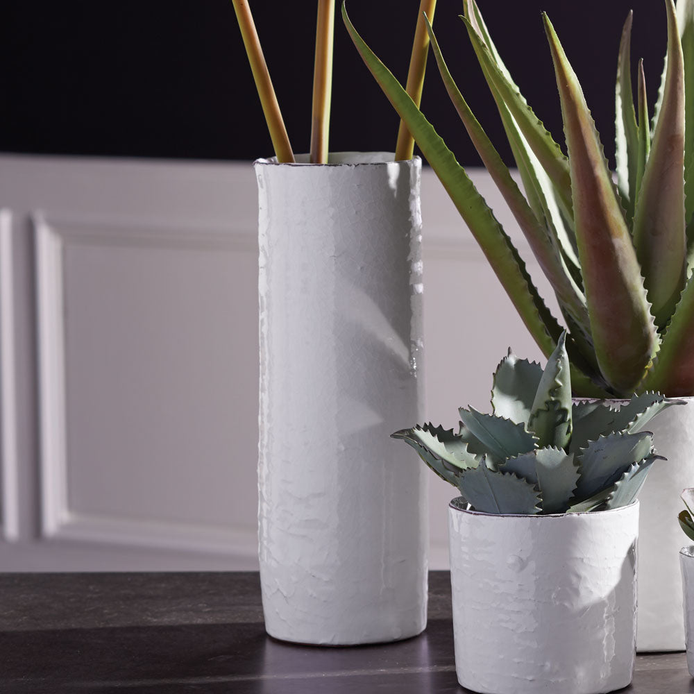 Handcrafted by skilled artisans, each piece is an original, varying in size and color. With a crackled glaze, uneven texture, and basic form, the Studio collection vases are simple and raw, like a freshly made ceramic piece direct from the hands of the artist. An understated accent for the well-styled coffee table, kitchen island, or countertop.