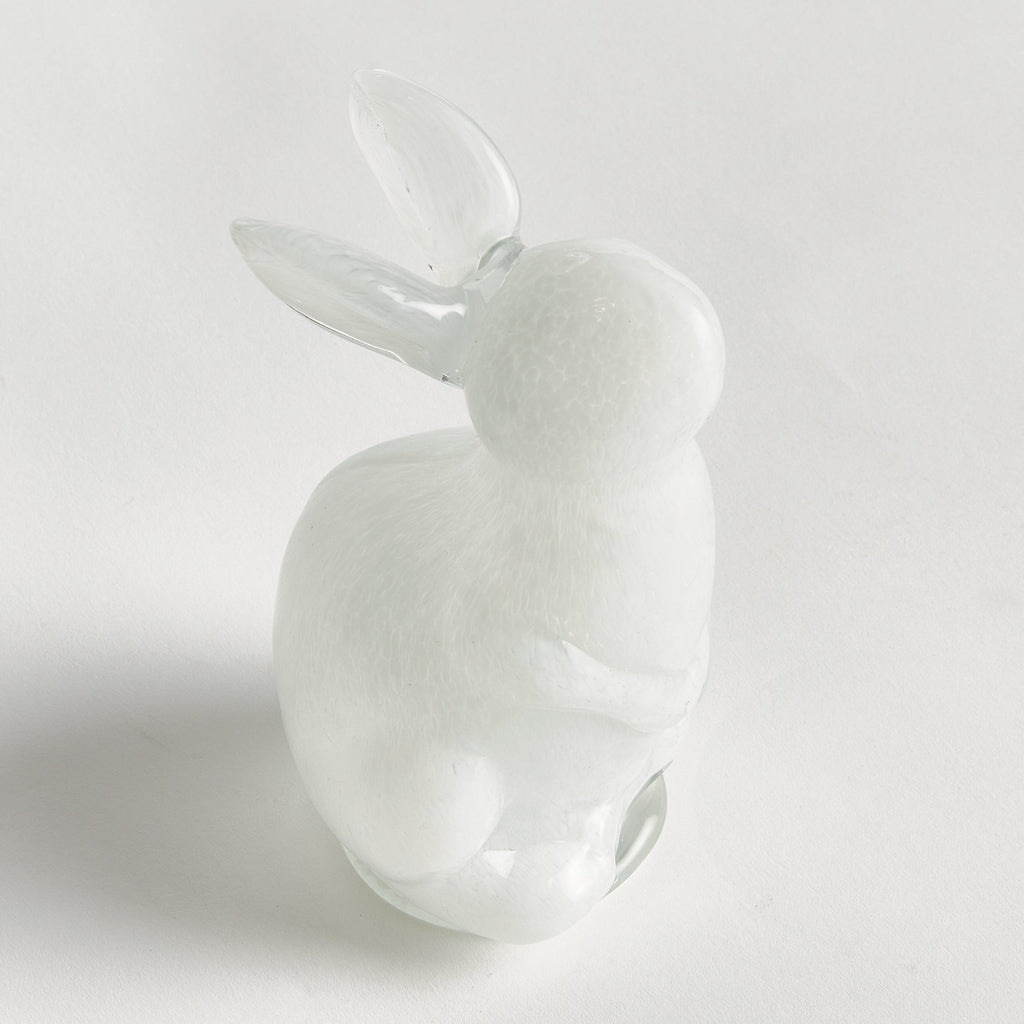 Our hand blown and molded glass bunny sculpture is simply adorable in Spring or even year round. The color is added to the glass during the heat process, not sprayed. A classic design available in pastel pink or bright white. A delightful touch of color to adorn your side table, coffee table, or ottoman.