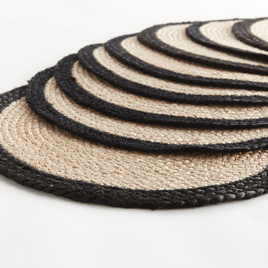 This set of eight placemats adds a natural element to your tablescape, perfect for both special occasions and everyday use. Each placemat is crafted from real jute, coil woven by a skilled artisan, providing a thick weave that adds a warm, welcoming feel. Available in two shapes, round and oval, these placemats offer a versatile backdrop to any style of dinnerware. The round placemats measure 15" round, while the oval placemats measure 17.5" x 13" x .25", ensuring they easily accommodate plates of all sizes.