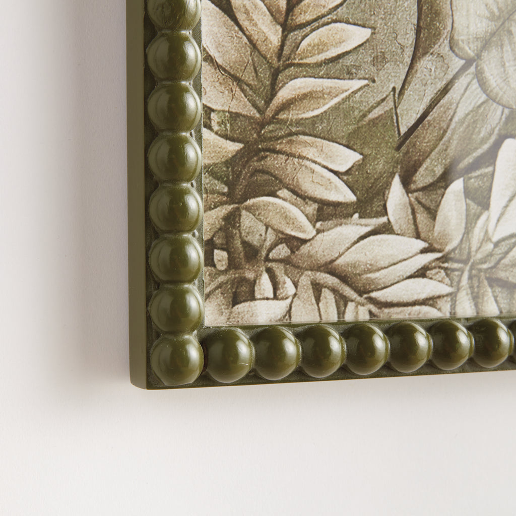 These tropical parrot prints with intricate backgrounds are a pop of color for any space from bedroom to foyer. In a classic British Colonial style, and finished off with a striking olive green frame, this set of two are made for the traditional beach cottage or any coastal-inspired setting.