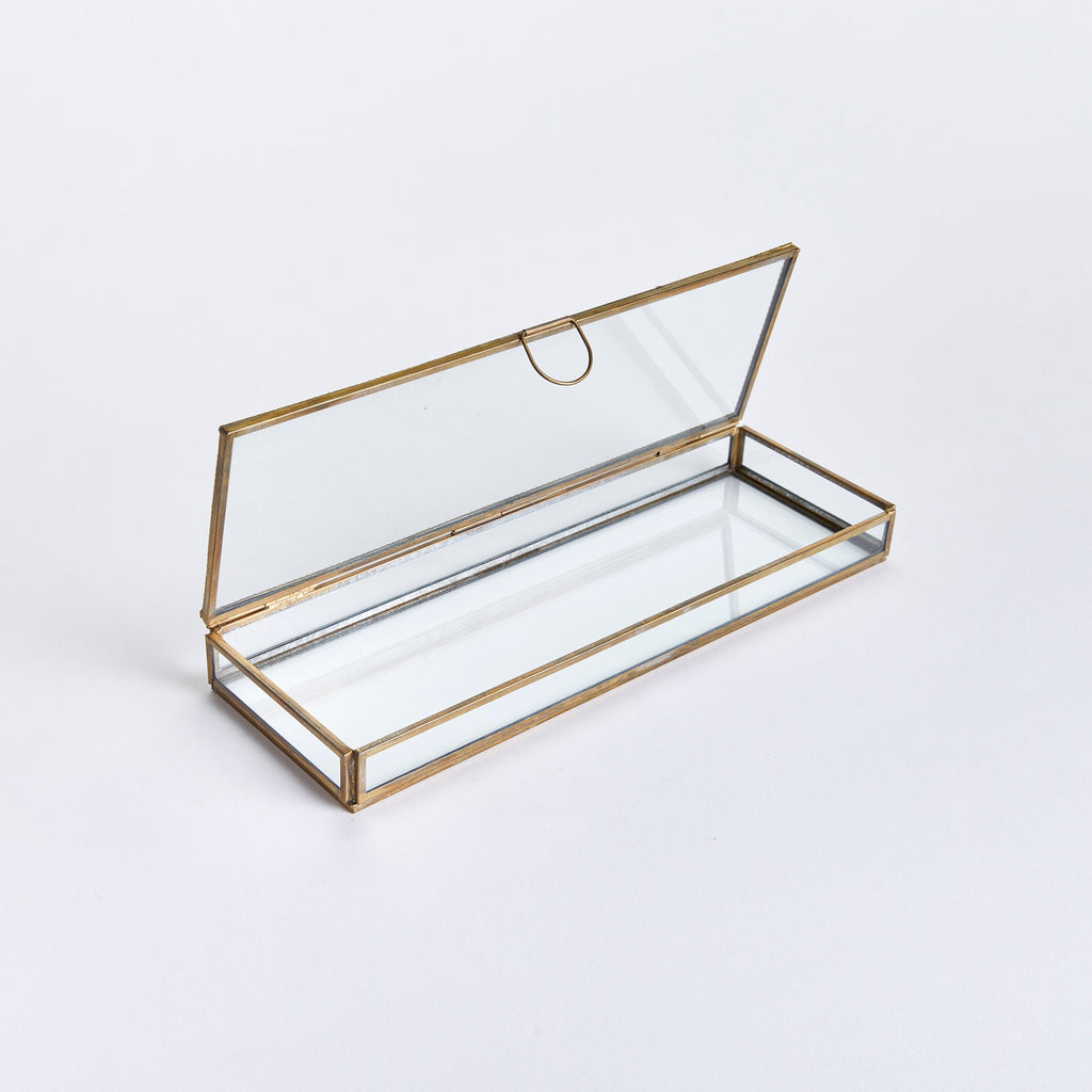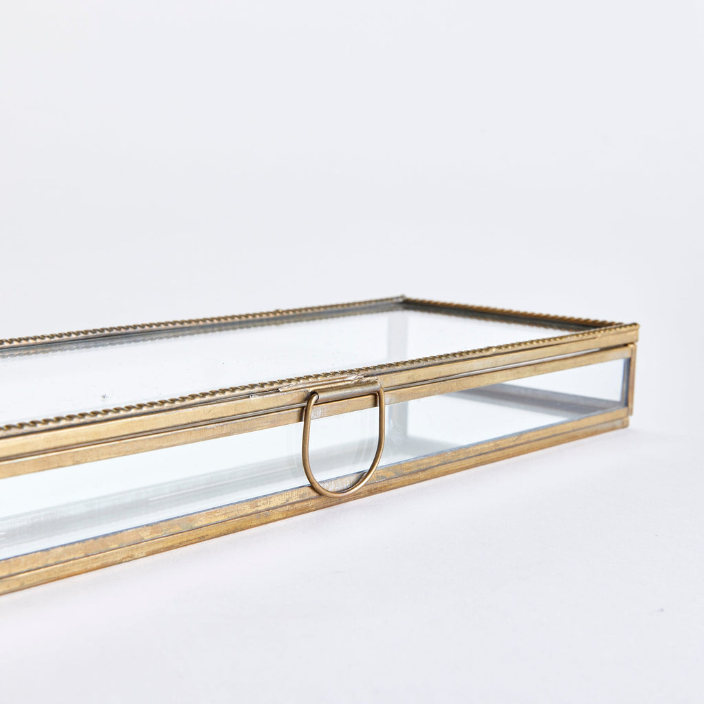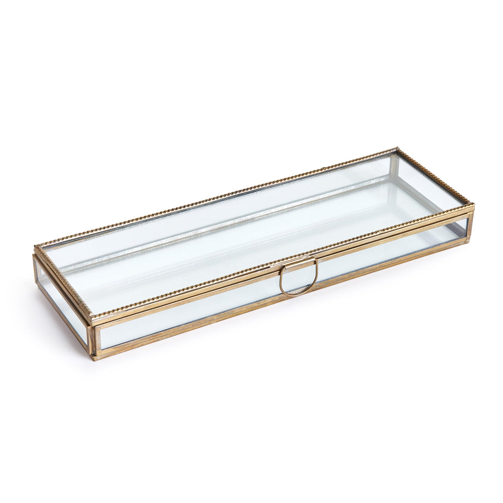 Simple and tailored with a beading detail, this glass and brass box is made to hold your most treasured mementos. A delicate loop handle keeps fingerprints off the glass.