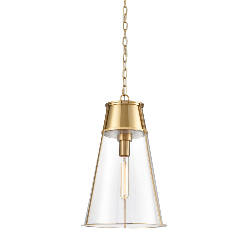 Generous in scale, and made of a modern mix of metal and glass, this pendant is a handsome fixture. Over an island, in an entry or foyer, a solid choice.
